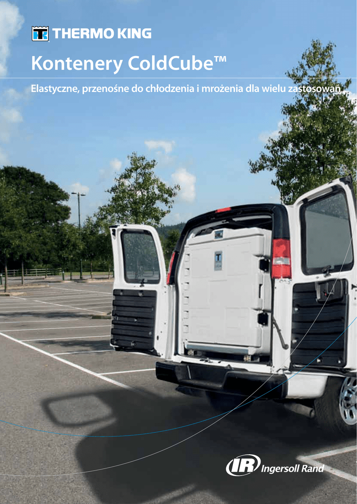 Kontenery ColdCube™ Elastyczne, przenośne do chłodzenia i mrożenia dla wielu zastosowań Kontenery ColdCube™ Elastyczne chłodzenie Potencjalne zastosowania • Duża wydajność chłodzenia (z 20°C do 0°C) • Dla małych pojazdów w firmach, które i mrożenia (z 20°C do -21°C). • Łatwość przenoszenia pomiędzy różnymi • • • • miejscami. Zasilanie: 12/24 V DC lub 110–240 V AC*. Utrzymywanie stałej temperatury. Cyfrowy sterownik zapewnia sprawne działanie. Wbudowany akumulator wyłącza się automatycznie, aby zapobiec rozładowaniu. Wyraźny interfejs użytkownika potrzebują kontenerów do chłodzenia i mrożenia o ograniczonych pojemnościach. • Jako kontenery do wynajęcia na czas prowadzenia prac serwisowych. • Optymalizacja załadunku w większych samochodach dostawczych i pełnowymiarowych naczepach. Dane techniczne • Zasilanie: 12/24 V DC lub 110–240 V AC* • Możliwość podglądania bieżącej temperatury i stanu pojemnika bez jego otwierania. • Cyfrowy odczyt wskazań zapewnia precyzyjną kontrolę nastawy temperatury. Konstrukcja zapewniająca trwałość • Wykonana z formowanego wtryskowo • • • • wytrzymałego polietylenu. Formowana rotacyjne jednoczęściowa konstrukcja zapewnia wytrzymałość i niewielką masę. Podzespoły zaprojektowano i przetestowano pod kątem stosowania w pojazdach. Materiały przeznaczone dla artykułów spożywczych ułatwiają czyszczenie. Wygodne przenoszenie dzięki wbudowanym uchwytom i zestawom akcesoriów transportowych. • • • • • • • (pobór prądu: 9–25 A przy zasilaniu 12 V DC); wbudowany prostownik prądu przemiennego na prąd stały. Hermetyczny kompresor cyfrowy. Gruba izolacja (do 130 mm grubości). Cyfrowa kontrola i odczyt temperatury. Czynnik chłodniczy R-134A (R-404A w modelu 610-213). Świadectwa CE, TUV i ATP. 2-letnia gwarancja. Dostępność szerokiej gamy akcesoriów pozwala korzystać z urządzenia dla różnych zastosowań. *Do mrożenia o pojemności 915 l = 12 V DC, 110–240 V AC. Duży wybór pojemników • Pojemniki dostępne są w sześciu różnych wersjach, odpowiadających potrzebom różnych firm. Przenośne, uniwersalne pojemniki dla różnych zastosowań Wybór kontenerów do mrożenia i chłodzenia o różnych rozmiarach Nr części Typ pojemność brutto (l) 6100208 Chłodzenie 140 l -10°C 9A Temp. minimalna Moc maks. (12 V DC) Moc Typ agregaśrednia tu chłodni(12 V DC)** czego 3A R-134A wymiary zewnętrzne (mm) wymiary wewnętrzne (mm) masa (kg) 1000 x 620 x 710 620 x 425 x 540 40 6100209 Mrożenie 140 l -21°C 18 A 3A R-134A 1000 x 620 x 710 620 x 425 x 540 40 6100210 Chłodzenie 330 l 0°C 9A 4,5 A R-134A 1020 x 1000 x 910 810 x 700 x 615 90 6100211 Mrożenie 330 l -21°C 18 A 5A R-134A 1020 x 1000 x 910 810 x 700 x 615 90 6100212 Chłodzenie 915 l 0°C 18 A 6,5 A R-134A 1510 x 1200 x 1180 1210 x 934 x 830 160 6100213 Mrożenie 915 l -21°C 25 A 9,5 A R-404A 1510 x 1200 x 1180 1210 x 934 x 830 165 W temperaturze otoczenia 30°C. **Moc znamionowa przy minimalnej temperaturze kontenera. Podajemy ją jedynie dla celów informacyjnych, nie należy jej traktować jako wartości gwarantowanej. Akcesoria Półki druciane Zestawy transportowe Wyświetlacz w kabinie Z możliwością dostosowania Kółka Wygodny podgląd - Zapewniają większą mobilność. temperatury ładunku do zawartości ładunku. - Dostępne dla pojemników z wnętrza kabiny. - 30 kg ładunku na każdą półkę. - Dostępne dla pojemników w każdym rozmiarze. - Możliwość stosowania pojemników w standardzie Gastronorm. - Ułatwia załadunek samochodów ciężarowych lub dostawczych. - Dostępna dla pojemników o pojemności 330 l (standard w pojemnikach 915 l) - Dostępny dla pojemników o pojemności 330 l i 915 l. - Dostępne dla pojemników do chłodzenia o pojemności 140 l i 330 l (standard w pojemnikach do mrożenia o pojemności 330 l i pojemnikach do chłodzenia i mrożenia o pojemności 915 l). Zestaw do mocowania Pozwała łatwo przymocować pojemnik do podłogi pojazdu. - Dostępny dla pojemników o pojemności 140 l i 330 l (pojemniki o pojemności 915 l są standardowo wyposażone w pierścień mocujący). Nr części TK 6100208 6100209 6100210 6100211 6100212 6100213 pojemność brutto 140 l chłodz. 140 l mroż. 330 l chłodz. 330 l mroż. 915 l chłodz. 915 l mroż. N/D N/D 6100205 6100205 6100205 6100205 6100201 6100201 6100214 6100214 6100216 6100216 Wyświetlacz w kabinie Półka druciana o pojemności 140 l i 330 l. Podstawa palet Plastykowe kurtyny paskowe Ograniczają wydostawanie się zimnego powietrza przy otwartych drzwiach. Stojak N/D N/D N/D N/D 6100217*** 6100217*** Podpora N/D N/D N/D N/D 6100218*** 6100218*** 6100202 6100202 6100203 6100203 N/D N/D N/D N/D 6100204 6100204 STD STD Kurtyna paskowa 6100219 6100219 6100220 STD STD STD Zestaw do mocowania 6100206 6100206 6100206 6100206 STD STD Wózek Podstawa palet ***Każda półka druciana 915 (619216) wymaga jedynie 1 stojaka. Każda zakupiona półka wymaga 1 zestawu podpór (dla maks. 3 półek). europe.thermoking.com W celu uzyskania dodatkowych informacji prosimy kontaktować się z: Thermo King® jest marką firmy Ingersoll Rand. Firma Ingersoll Rand (NYSE:IR) poprawia jakość życia, zapewniając bezpieczne, komfortowe i efektywne środowisko. Zadaniem naszych pracowników i naszej rodziny marek, takich jak Thermo King®, Trane®, Ingersoll Rand®, Club Car® i Schlage®, jest poprawa jakości powietrza w domach i innych budynkach, transport i ochrona żywności oraz produktów nietrwałych, bezpieczeństwo domów i obiektów komercyjnych, a także zwiększenie produktywności i efektywności w miejscach pracy. Nasza firma to światowy potentat o kapitale 14 miliardów USD dbający o zrównoważony postęp i trwałe rezultaty na świecie. ingersollrand.com Ingersoll Rand — Lenneke Marelaan 6, B-1932 Sint-Stevens-Woluwe, Belgia © 2012 Ingersoll-Rand Company Limited TK 70001 (09-201