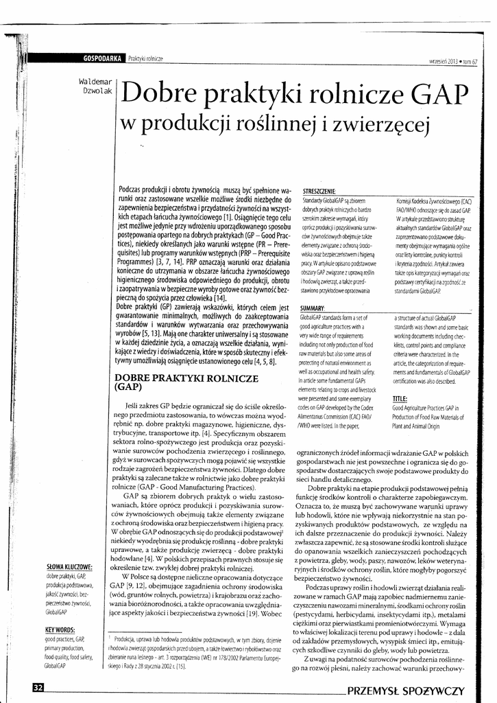 GAP sq zbiorem dobrych praktyk o wielu zastosowaniach, ktÓre oprocz produkcji i pozyskiwania surowcow zywnościowych obejmują także elemenĘ zwi1zane