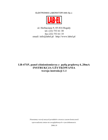 LB-471P, panel ciśnieniomierza z pętlą prądową 4..20mA - LAB-EL