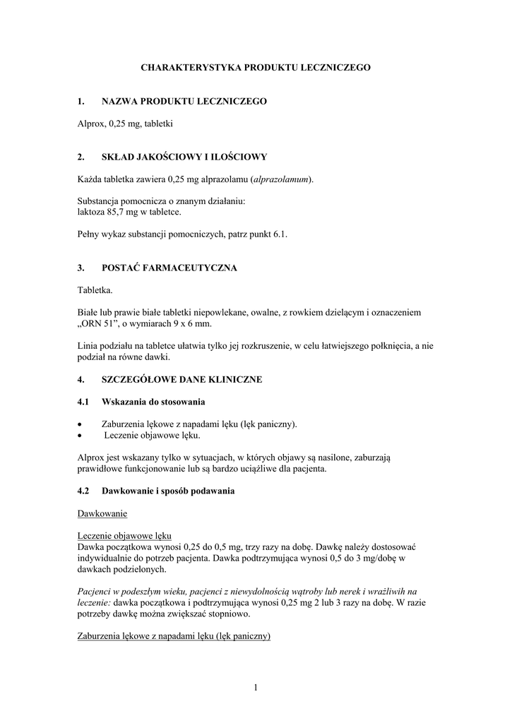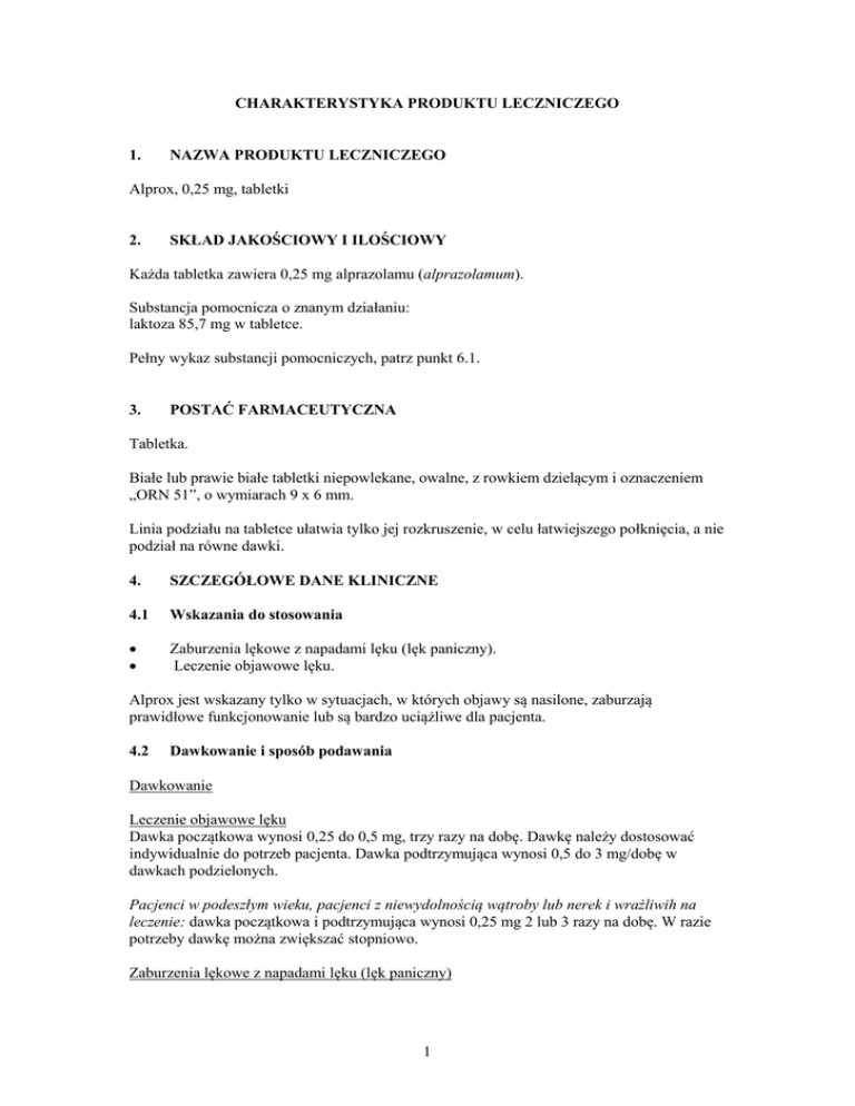 Charakterystyka produktu leczniczego Alprox 0,25 mg
