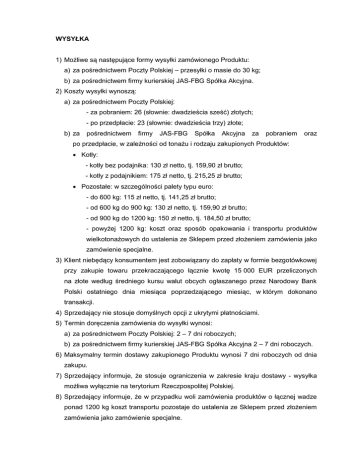WYSYŁKA 1) Możliwe są następujące formy wysyłki zamówionego