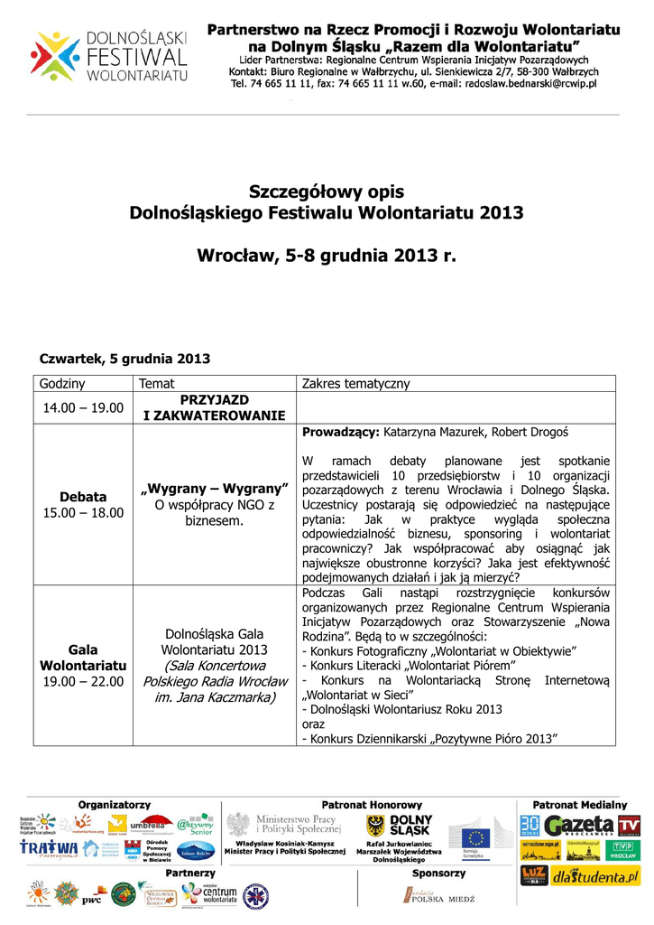 Szczegółowy opis Dolnośląskiego Festiwalu Wolontariatu 2013