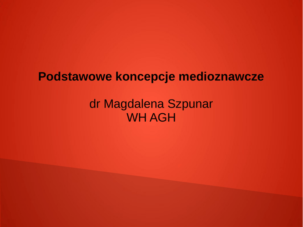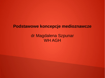 Podstawowe koncepcje medioznawcze dr Magdalena Szpunar WH