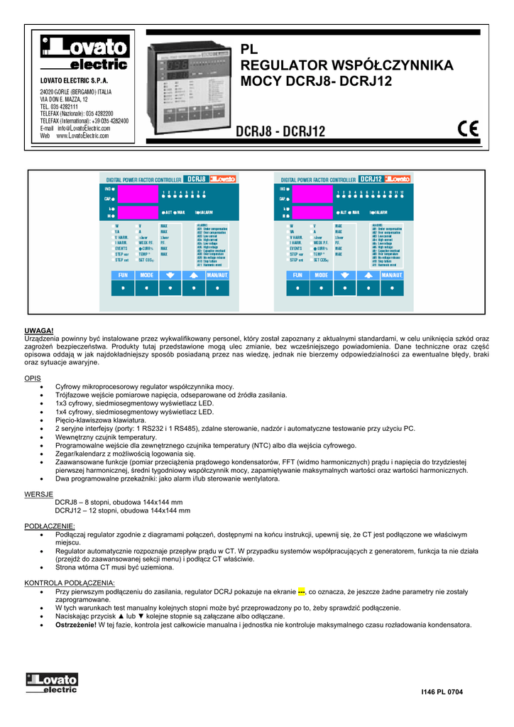 Instrukcja regulatora wspczynnika mocy DCRJ8