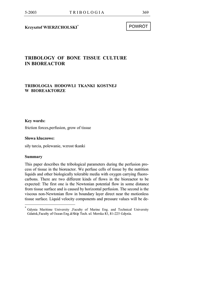 TRIBOLOGIA HODOWLI TKANKI KOSTNEJ