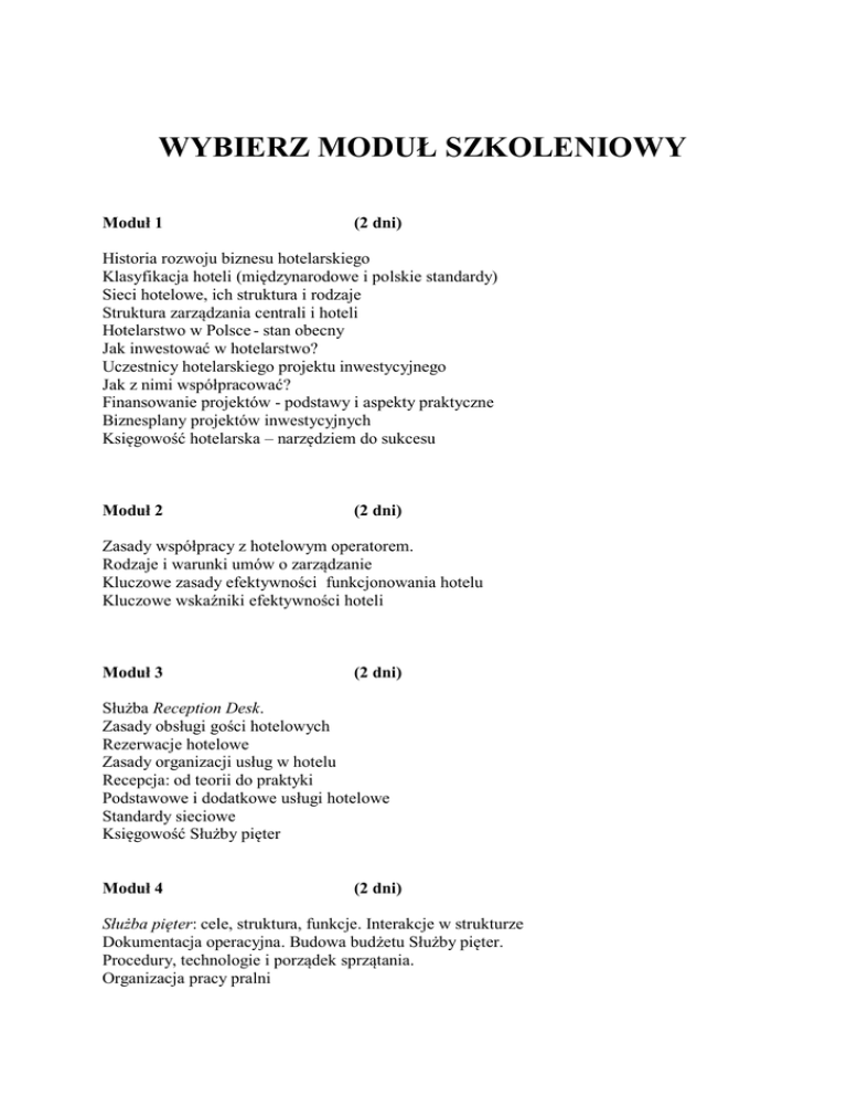wybierz moduł szkoleniowy