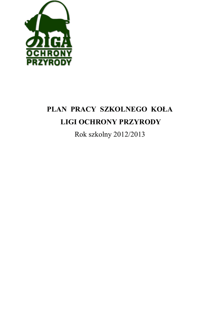 PLAN PRACY SZKOLNEGO KOŁA LIGI OCHRONY PRZYRODY Rok szkolny 2012/2013 Termin Tematyka ,zdania Stałe 1 Opieka nad ogrodem i zielenią wokół szkoły czynności 2 .Pielęgnacja o rozmnażanie roślin doniczkowych W ciągu gabinecie przyrodniczym i na korytarzach szkoły. roku 3. Obserwacje przyrodnicze Formy pracy odpowiedzialni Wszyscy członkowie 4. Redagowanie gazetek. 5. Bieżące informacje o filmach przyrodniczych TV. Cały rok 6. Organizacja Szkolnego Konkursu Wiedzy Przyrodniczej. JESIEŃ Czynności zależne od pory roku klasy IV, V ,VI IX,X,XI, 1. Zapisy do koła . Ogłoszenie na gazetce 2. 1-30 października Dni Ochrony Przyrody -zbieranie nasion roślin ozdobnych jednorocznychaksamitek, cynii , astrów, -pielęgnacja młodych drzewek, -wykonanie zielnika – rozpoznawanie nazw drzew po wyglądzie liści, roślin rosnących na łące, 3. Bezpieczne grzybobranie –grzyby jadane i trujące. Praca z atlasem 4. Jesienne prace w ogrodzie szkolnym pielęgnacja roślin ozdobnych. 5. Wycieczka do lasu – obserwacje zmian zachodzących w lesie. 6. Usuwanie z krzewów i drzew starych gniazd , żeby Praca na terenie szkoły umożliwić w tym samym dogodnym miejscu wicie nowych gniazd. ZIMA 1. Zimowe dokarmianie ptaków W zależności od pogody XII,I,II -zbiórka karmy dla ptaków, opiekun , członkowie koła -czyszczenie starych i budowa nowych karmników - wykonanie gazetki „Dokarmiamy ptaki” 2. 9 stycznia Dzień LOP- szkolny dzień filmu Film pt.Świat zwierząt” przyrodniczego czasopisma „Zwierzaki” 3. Czytanie czasopismo tematyce przyrodniczej. „Przyroda Polska” 4. Zimowy krajobraz – spacer po śniegu , rozpoznawanie śladów zwierząt, obserwacje pogody. 5.” Przyśpieszamy wiosnę” zimowa hodowla roślin listopad –luty cebulowych , tulipanów , krokusów, prezentacja hodowli gałązki forsycji w pracowni przyrodniczej WIOSNA 1.Wiosenne obserwacje przyrody III,IV,V -przyloty ptaków, rozpoznawanie i nazywanie ptaków, Wszyscy członkowie koła obserwacje lornetką, -pogadanka na temat konieczności ochrony gniazd ptasich i jaj ptasich Praca z atlasem -rozpoznawanie wiosennych kwiatów chronionych. 2. Czyszczenie i zawieszanie budek lęgowych. 3. 1IV do 31 V Dni Lasu i Zadrzewieni gazetka - sadzenie drzewek 4. 22 kwietnia Światowy Dzień Ziemi Gazetka „ryby naszych 5. Tydzień Czystości Wód wód” - wycieczka do Oczyszczalni ś cieków - pogadanka o konieczności ochrony wód i zasadach wędkowania , 6. Konkurs Wiedzy Przyrodniczej 7. Dbałość estetykę otoczenia szkoły i ogrodu szkolnego. Wszyscy członkowie koła - uprawa działki , sadzenie nowych odmian roślin, uprawa tulipanów , żonkili ,dalii i innych roślin ozdobnych jednorocznych -wzbogacanie ogrodu szkolnego nowymi odmianami roślin. 8. 5 czerwca Światowy Dzień Ochrony Środowiska -5 czerwca Dzień Lasu – spotkanie z leśniczym i pogadanka nt .Ochrona lasów i właściwe zachowanie się w lesie „ - pogadanka i redagowanie gazetki nt. Jak można chronić przyrodę podczas wakacji” 9.Konkurs piosenki ekologicznej Opracowała: Helena Fudali Anna Stoch – Badyla Alina Szykuła Leśniczy