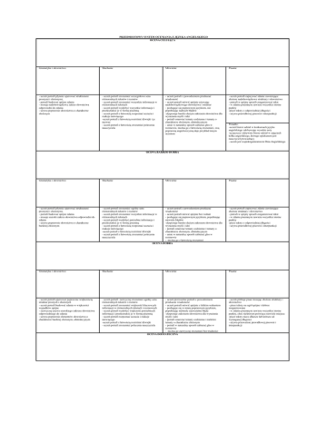PRZEDMIOTOWY SYSTEM OCENIANIA Z JĘZYKA ANGIELSKIEGO OCENA CELUJĄCA Gramatyka i słownictwo Słuchanie Mówienie Pisanie - uczeń potrafi płynnie operować strukturami prostymi i złożonymi, - potrafi budować spójne zdania - stosuje nadobowiązkowy zakres słownictwa odpowiedni do zdania - używa poprawnie słownictwa o charakterze złożonym - uczeń potrafi zrozumieć szczegółowo sens różnorodnych tekstów i rozmów - uczeń potrafi zrozumieć wszystkie informacje w różnorodnych tekstach - uczeń potrafi wydobyć wszystkie informacje i przekształcić je w formę pisemną - uczeń potrafi z łatwością rozpoznać uczucia i reakcje mówiącego -uczeń potrafi z łatwością rozróżnić dźwięki i je nazwać - uczeń potrafi z łatwością zrozumieć polecenia nauczyciela - uczeń potrafi z powodzeniem przekazać wiadomość - uczeń potrafi mówić spójnie używając nadobowiązkowego słownictwa i struktur - posługuje się poprawnym językiem, nie popełniając żadnych błędów -dysponuje bardzo dużym zakresem słownictwa dla wyrażania myśli i idei - potrafi omawiać tematy codzienne i tematy o charakterze złożonym, abstrakcyjnym - umie w naturalny sposób zabierać głos w rozmowie, można go z łatwością zrozumieć, swą poprawną angielszczyzną daje przykład innym uczniom - uczeń potrafi zapisywać zdanie zawierające złożone nadobowiązkowe struktury i słownictwo - potrafi w spójny sposób zorganizować tekst - w zdaniu pisemnym zawiera wszystkie istotne punkty -pisze teksty o odpowiedniej długości - używa prawidłowej pisowni i interpunkcji Ponadto: -uczeń bierze udział w konkursach języka angielskiego zdobywając wysokie noty -uczęszcza i aktywnie bierze udział w zajęciach kółka angielskiego, którego opiekunem jest nauczyciel prowadzący - uczeń jest współorganizatorem Dnia Angielskiego OCDNA BARDZO DOBRA Gramatyka i słownictwo Słuchanie Mówienie - uczeń potrafi płynnie operować strukturami prostymi i złożonymi, - potrafi budować spójne zdania - stosuje szeroki zakres słownictwa odpowiedni do zdania - używa poprawnie słownictwa o charakterze bardziej złożonym - uczeń potrafi zrozumieć ogólny sens różnorodnych tekstów i rozmów - uczeń potrafi zrozumieć wszystkie informacje w różnorodnych tekstach - uczeń potrafi wydobyć potrzebne informacje i przekształcić je w formę pisemną - uczeń potrafi z łatwością rozpoznać uczucia i reakcje mówiącego -uczeń potrafi z łatwością rozróżnić dźwięki - uczeń potrafi z łatwością zrozumieć polecenia nauczyciela Gramatyka i słownictwo Słuchanie - uczeń potrafi operować poprawnie większością struktur prostych i złożonych - uczeń potrafi budować zdania w większości wypadków spójne - zazwyczaj używa szerokiego zakresu słownictwa odpowiedniego do zdania - używa poprawnie elementów słownictwa o charakterze bardziej złożonym, abstrakcyjnym - uczeń potrafi zazwyczaj zrozumieć ogólny sens różnorodnych tekstów i rozmów - uczeń potrafi zrozumieć większość kluczowych informacji w różnorodnych tekstach i rozmowach - uczeń potrafi wydobyć większość potrzebnych informacji i przekształcić je w formę pisemną - uczeń potrafi rozpoznać uczucia i reakcje mówiącego -uczeń potrafi z łatwością rozróżnić dźwięki - uczeń potrafi zrozumieć polecenia nauczyciela - uczeń potrafi z powodzeniem przekazać wiadomość - uczeń potrafi mówić spójnie bez wahań - posługuje się poprawnym językiem, popełniając niewiele błędów -dysponuje bardzo dużym zakresem słownictwa dla wyrażania myśli i idei - potrafi omawiać tematy codzienne i tematy o charakterze złożonym, abstrakcyjnym - umie w naturalny sposób zabierać głos w rozmowie - można go z łatwością zrozumieć OCENA DOBRA Mówienie - uczeń przeważnie potrafi z powodzeniem przekazać wiadomość - uczeń potrafi mówić spójnie z lekkim wahaniem - posługuje się w miarę poprawnym językiem, popełniając niekiedy zauważalne błędy -dysponuje zakresem słownictwa dla wyrażania myśli i idei - potrafi omawiać tematy codzienne i niektóre tematy o charakterze złożonym - potrafi w naturalny sposób zabierać głos w rozmowie - można go zazwyczaj zrozumieć bez trudności OCENA DOSTATECZNA Pisanie - uczeń potrafi zapisywać zdanie zawierające złożone struktury i słownictwo - potrafi w spójny sposób zorganizować tekst - w zdaniu pisemnym zawiera wszystkie istotne punkty -pisze teksty o odpowiedniej długości - używa prawidłowej pisowni i interpunkcji Pisanie - uczeń próbuje pisać stosując złożone struktury i słownictwo - pisze teksty na ogół spójne i dobrze zorganizowane - w zdaniu pisemnym zawiera wszystkie istotne punkty, choć niektórym poświęca niewiele miejsca -pisze teksty nieco dłuższe lub krótsze od wymaganej długości - używa przeważnie prawidłowej pisowni i interpunkcji Gramatyka i słownictwo Słuchanie Mówienie - uczeń potrafi operować poprawnie niektórymi strukturami prostymi i złożonymi - potrafi budować zdania niekiedy spójne - na ogół używa zakresu słownictwa odpowiedniego do zdania - używa niewiele słownictwa o charakterze bardziej złożonym - uczeń potrafi czasem zrozumieć ogólny sens różnorodnych tekstów i rozmów - uczeń potrafi zrozumieć część kluczowych informacji w różnorodnych tekstach i rozmowach - uczeń potrafi wydobyć część potrzebnych informacji i przekształcić je w formę pisemną - uczeń potrafi zazwyczaj rozpoznać uczucia i reakcje mówiącego -uczeń potrafi z łatwością rozróżnić większość dźwięków - uczeń potrafi zazwyczaj zrozumieć polecenia nauczyciela Gramatyka i słownictwo Słuchanie - uczeń potrafi poprawnie operować niedużą ilością struktur prostych i złożonych - potrafi budować zdania, ale przeważnie niespójne - dysponuje ograniczonym zakresem słownictwa odpowiedniego do zdania - czasem niepoprawnie używa codzienn