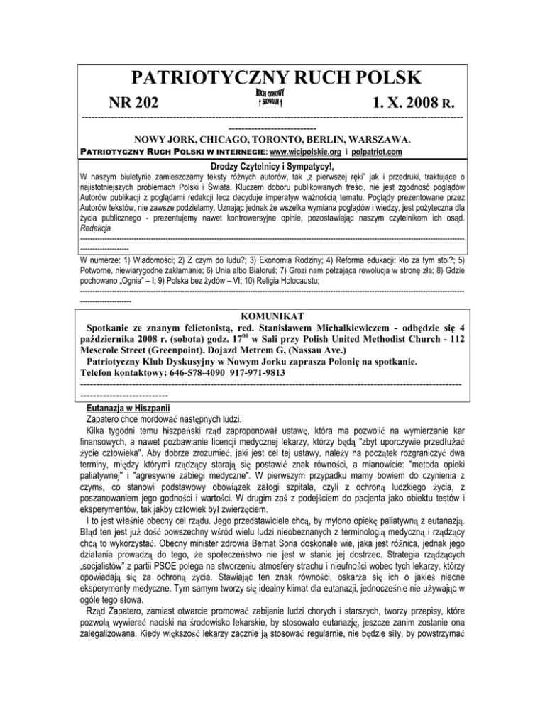patriotyczny ruch polsk nr 202 1. x. 2008 r.