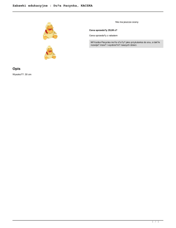 Zabawki edukacyjne : Du?a Pacynka, KACZKA Nie ma jeszcze oceny Cena sprzeda?y 29,00 z? Cena sprzeda?y z rabatem Mi?ciutka Pacynka mo?e s?u?y? jako przytulanka do snu, a tak?e rozwija? mow? i wyobra?ni? naszych dzieci. Opis Wysoko??: 30 cm 1 / 1 Powered by TCPDF (www.tcpdf.org)