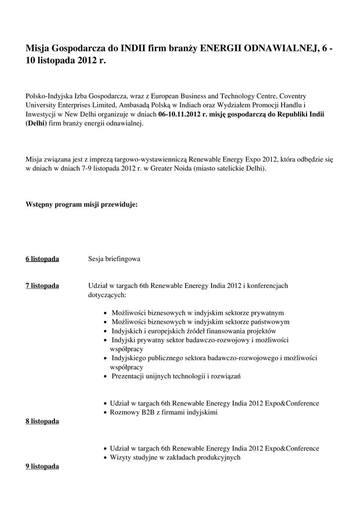Misja Gospodarcza do INDII firm branży ENERGII ODNAWIALNEJ, 6