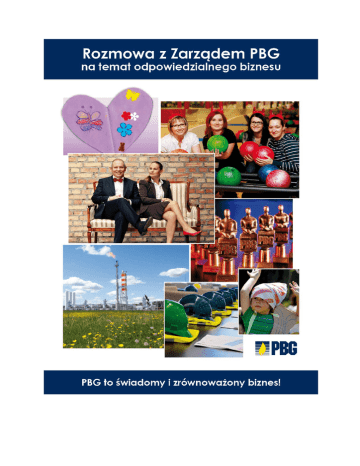 Rozmowa z Zarządem PBG na temat odpowiedzialnego biznesu Aspekt – Pracownicy 1. Czym jest CSR? Jerzy Wiśniewski (prezes zarządu PBG): W moim prostolinijnym wyobrażeniu to, o co w CSRze chodzi, to przede wszystkim równowaga; równowaga na każdym poziomie i dla każdego. Po jednej stronie zadowolony Pracownik, po drugiej ochrona środowiska, a po trzeciej działalność biznesowa. Musimy dbać o to, aby tak prowadzić realizacje, aby to co robimy, miało w przyszłości jak najmniej negatywny wpływ na środowisko naturalne i równoważyło te trzy aspekty. Ponadto, w moim odczuciu, hasłem wspólnym dla CSR jest słowo POMAGAM. Pomagam dzieląc się doświadczeniem, informacjami, pomagam zachowywać dla przyszłych pokoleń to, co otrzymaliśmy od natury, pomagam zrozumieć, że warto jest być uczciwym i trwać w swoich przekonaniach, wreszcie pomagam innym żyć i rozwijać swoje talenty, dzieląc się wypracowanym zyskiem. CSR to dla mnie działanie z myślą o równowadze i stabilności. Naszą codzienną pracę, każde nasze działanie prowadzimy w myśl tej zasady już od wielu lat. Dziś wiemy także, jak postępować w przyszłości – myślimy o jutrze, pamiętając i wyciągając wnioski z wczoraj. 2. Odpowiedzialny biznes to także (a może nawet – przede wszystkim) dbanie o Pracowników. Jak PBG tworzy zespół Pracowników i jak o nich dba? Małgorzata Wiśniewska (prezes Fundacji PBG): Fundamentem naszej działalności są ludzie. Na początku pozyskiwaliśmy pracowników na zasadzie rekomendacji przyjaciół i znajomych. W końcu nie każdy w tamtych czasach był na tyle odważny, by dołączyć do grupy zapaleńców. Dzięki temu udało się zbudować zespół ludzi oddanych i zaangażowanych w budowanie wspólnego sukcesu. Ci doświadczeni chętnie dzielili się, i do dziś się dzielą, wiedzą, a Ci młodzi chętnie tę wiedzę chłoną. Od początku z mężem dawaliśmy pracownikom duży kredyt zaufania, niejednokrotnie pomagaliśmy finansowo w kształceniu i z satysfakcją stwierdzam, że na palcach jednej ręki możemy policzyć pomyłki od początku istnienia naszej działalności (tj. od roku 1994) . Dziś większość tych młodych to 2 managerowie zarządzający nieraz dużymi zespołami pracującymi nad skomplikowanymi organizacyjnie zadaniami. Cieszy nas to, że sami rozwiązują problemy i rozwijają wiele zagadnień, jednak w przypadku poważniejszych decyzji po poradę przychodzą do nas. Dzielą się z nami nie tylko problemami zawodowymi, ale również osobistymi. Wiedzą, że zawsze darzymy ich z mężem i z całym zarządem spółki szacunkiem i wierzymy w ich potencjał i możliwości. Dlatego udało nam się stworzyć w firmie wyjątkową atmosferę i kulturę organizacyjną, która sprzyja realizacji celów nie tylko spółki, ale i osobistych naszych pracowników. 3. Co PBG oferuje swoim pracownikom? Dlaczego warto tutaj pracować? Mariusz Łożyński: - poczucie stabilizacji - wypłata na czas - szansa rozwoju zawodowego i udział w różnego rodzaju szkoleniach - możliwość realizacji ciekawych projektów - współpraca z miłymi i kompetentnymi ludźmi - realizacja różnego rodzaju ciekawych pasji - wyjazdy i imprezy integracyjne - dbałość o kondycję fizyczną - szansa godzenia życia zawodowego z rodzinnym - współdecydowanie i współtworzenie miejsca pracy - możliwość pomagania i poczucia, że jest się potrzebnym Wszystkie te elementy mają odzwierciedlenie w Polityce personalnej spółki PBG. 4. W jakich szkoleniach Pracownicy PBG mieli szansę uczestniczyć w roku 2010? Mariusz Łożyński (wiceprezes zarządu PBG): Mało kto podchodzi tak jak my do kwestii edukacji Pracowników. Mamy świadomość tego, że rozwój spółki oraz budowanie jej konkurencyjnej przewagi na rynku są możliwe dzięki nowoczesnym technologiom, ale przede wszystkim dzięki wysoko wykwalifikowanej kadrze. Dlatego dążymy do tego, aby każdy z Pracowników z satysfakcją podejmował nowe wyzwania i doskonalił swoje kwalifikacje. Dlatego też współfinansujemy naukę na wyższych uczelniach, kursach i szkoleniach branżowych oraz miękkich. W ramach dzielenia się dobrymi praktykami Pracownicy organizują i uczestniczą 3 w szkoleniach wewnętrznych, organizowanych przez i dla siebie. Innymi równie ważnymi (w mojej ocenie, ze względu na obszar, którym się zajmuję) są szkolenia językowe. Na terenie spółki funkcjonuje Szkoła Językowa, w której Pracownicy mogą pobierać lekcje języka angielskiego, niemieckiego, włoskiego, hiszpańskiego i rosyjskiego. W samym 2010 roku łączna liczba godzin szkoleniowych Pracowników PBG wyniosła 11097, a budżet szkoleniowy opiewał na ponad 352 tys. zł. 5. A jak wyglądają plany szkoleniowe na kolejne lata? Czy podtrzymany zostanie tak wysoki poziom? Mariusz Łożyński: W planach na lata 2011–2012 mamy pozyskanie dofinansowania na szkolenia ze środków Europejskiego Funduszu Społecznego. Na podstawie badań potrzeb szkoleniowych i w zgodzie ze strategią PBG realizować będziemy szkolenia według harmonogramu szkoleń na kolejne dwa lata. Plan uwzględnia m.in. szkolenia dla spawaczy, informatyczne, doradztwo indywidualne oraz specjalny pakiet szkoleń dla pracowników, którzy ukończyli 45 rok życia. Planujemy poszerzanie umiejętności zarządzania projektem. Poza tym będziemy kontynuować wypracowane dobre praktyki w tym zakresie. 6. Czy pracownicy mają świadomość działań związanych ze społeczną odpowiedzialnością biznesu? Małgorzata Wiśniewska: Wyniki ankiety przeprowadzonej w grudniu 2010, wskazują na to, że Pracownicy PBG maja bardzo dużą (bo aż 98 proc. ankietowanych) świadomość istotności działań społecznie odpowiedzialnych. Działań podejmowanych każdego dnia, na każdym etapie, przez całą spółkę, przez każdego jej członka. Ponadto 85 proc. badanych jest zdania, że prowadząc biznes w oparciu o te zasady, spółka staje się bardziej atra