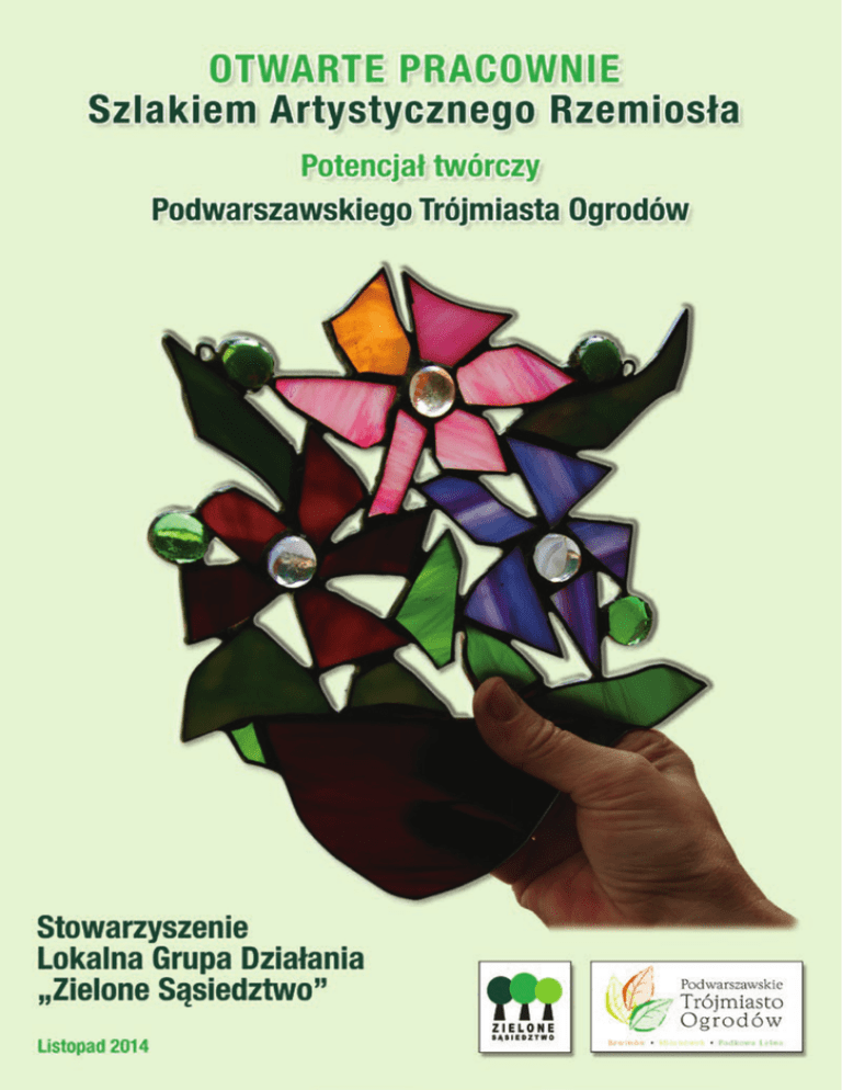 Zespół autorski: Karolina Likhtarovich Anna Łukasiewicz Barbara Potkańska Wydano ze środków Programu Rozwoju Obszarów Wiejskich Osi 4 LEADER na lata 2007–2013 w ramach projektu współpracy „Rękodzieło i rzemiosło artystyczne szansą rozwoju turystycznego i ochrony lokalnego dziedzictwa” (akronim LOKART). Redakcja i korekta: Maria Konopka-Wichrowska Tłumaczenie: Kevin Essex S kład i druk: „Megraf” Zakład Wydawniczo-Poligraficzny Krzysztof Burzec, ul. Orzeszkowej 1, 05-840 Brwinów Spis treści Część I O Podwarszawskim Trójmieście Ogrodów 5 Festiwal Otwarte Ogrody 6 Działalność Lokalnej Grupy Działania „Zielone Sąsiedztwo” 7 Strategia rozwoju turystyki gmin Brwinów, Milanówek, Podkowa Leśna na lata 2010–2015 8 Małe projekty LEADER 9 Warsztaty zrealizowane w ramach programu Grundtvig 10 Szlakiem Artystycznego Rzemiosła 11 Projekt LOKART 12 Część II Prezentacja lokalnych twórców i pracowni artystycznych 15 Część III Trail Of Arts & Crafts Creative Potential The Tri-Garden Cities Near Warsaw Stowarzyszenie LGD „Zielone Sąsiedztwo” 28 3 Od zespołu autorskiego Przekazujemy Państwu publikację, która, w naszym przekonaniu, zwracając uwagę na rolę potencjału twórczego trzech gmin: Brwinowa, Podkowy Leśnej i Milanówka – tworzących Podwarszawskie Trójmiasto Ogrodów, jest też skromną zapowiedzią możliwości wspólnej promocji i korzyści z niej płynących. W niniejszym opracowaniu, przygotowanym w ramach projektu współpracy: Rękodzieło i rzemiosło artystyczne szansą rozwoju turystycznego i ochrony lokalnego dziedzictwa, podejmujemy próbę przybliżenia bogactwa możliwości twórczych naszych najbliższych sąsiadów, ludzi, których spotykamy na co dzień. Atrakcyjność różnorodnej oferty lokalnych Otwartych Pracowni i twórców z terenu Podwarszawskiego Trójmiasta Ogrodów wymagałaby szerszego opracowania. Mamy nadzieję, że ta publikacja stanie się inspiracją dla głębszych działań sieciujących i wspierających lokalnych twórców. Mili Państwo, poznajcie naszych artystów, dajcie się uwieść czarowi ich pasji, poczujcie klimat i energię obecną w Podwarszawskim Trójmieście Ogrodów! Dołączcie do kreatywnego grona! Uniwersalny język sztuki i pragnienie twórczego rozwoju nie znają granic i łamią wszystkie bariery. W zgodzie z ideą uczenia się przez całe życie kierujemy ofertę Otwartych Pracowni do wszystkich grup wiekowych, do wszystkich mieszkańców i gości gotowych na kreatywne działania. Inspirujmy, wzbogacajmy i wzmacniajmy to, co w nas najcenniejsze – nasz potencjał twórczy. W imieniu Stowarzyszenia Lokalna Grupa Działania „Zielone Sąsiedztwo” dziękujemy serdecznie wszystkim osobom, organizacjom i instytucjom, które wspierały nas w realizacji projektu LOKART. Prezentujemy tu osoby i pracownie współpracujące z LGD przy wcześniejszych projektach, zaledwie przykłady twórczych działań na terenie PTO. Zapraszamy wszystkich zainteresowanych do kontaktu. Więcej informacji znajdą Państwo na stronie www.zielonesasiedztwo.org.pl Zarząd Stowarzyszenia LGD „Zielone Sąsiedztwo” Podkowa Leśna, listopad 2014 r. 4 Stowarzyszenie LGD „Zielone Sąsiedztwo” Część I O Podwarszawskim Trójmieście Ogrodów Trzy sąsiadujące ze sobą podwarszawskie gminy: Brwinów, Podkowa Leśna i Milanówek – tworzące Podwarszawskie Trójmiasto Ogrodów, to teren pod wieloma względami wyjątkowy, postrzegany jako Mała Ojczyzna. Jego specyfika jest zauważalna w wymiarach zarówno terytorialnym (przestrzennym) i społeczno-kulturowym, jak i przyrodniczym. To także w dużej mierze wspólnota historii i tożsamości mieszkańców lokalnych wspólnot. Trzy gminy składające się z niewielkich ośrodków miejskich z (co dotyczy gminy Brwinów) otaczającymi je terenami wiejskimi charakteryzuje zabudowa jednorodzinna lub willowa, bez dużych osiedli mieszkaniowych, za to z mnogością terenów zielonych. I choć te ośrodki miejskie rozwijały się niezależnie, to jednak podobny dotyczący ich zamysł na początku XX wieku zdeterminował obecny funkcjonalny, bardzo zbliżony charakter gmin. Podkowa Leśna, Brwinów i Milanówek ponad sto lat temu zaczęły rozwijać się zgodnie z ideą powstających wówczas w Europie miast ogrodów, gdzie dominującą cechą stały się właśnie willowy charakter zabudowy i znacząca ilość bujnej zieleni. Na ten okres przypada także rozwój ważnych szlaków komunikacyjnych: Kolei Warszawsko-Wiedeńskiej (przebiega przez Brwinów i Milanówek) oraz Elektrycznej Kolei Dojazdowej (dziś samorządowa Warszawska Kolej Dojazdowa S.A.). Trzy podwarszawskie miejscowości połączyła dodatkowo ważna karta historii II wojny światowej. Zyskały one wówczas miano „Małego Londynu”, przyjmując nie tylko władze Państwa Podziemnego, lecz także tysiące uchodźców z Powstania Warszawskiego. Trudno nie zauważyć, że trzy podwarszawskie gminy to także tereny o wyjątkowych walorach przyrodniczych. Zielone, ogólnodostępne przestrzenie, brak uciążliwego przemysłu, liczne pomniki przyrody i rezerwaty, sąsiedztwo lasu – to wszystko stwarza dogodne i przyjazne mieszkańcom warunki życia, a przebywającym czasowo gościom zapewnia odpoczynek i chwilę oddechu od wielkomiejskiego zgiełku. O charakterze miejsca przesądzili wyjątkowi ludzie, którzy doceniając jego potencjał, zdecydowali się tu zamieszkać, wybrać je jako swoje miejsce na ziemi. Na terenie naszych gmin od lat osiedlali się artyści różnych dziedzin, pisarze, poeci, aktorzy – ludzie wolnych profesji, twórczy, aktywni, którzy znaleźli tu właściwą atmosferę i doskonałe warunki do rozwoju i artystycznej działalności. Dziś możemy z satysfakcją powiedzieć, że wciąż po sąsiedzku żyje i pracuje naprawdę wielu twórców. Nie sposób wszystkich wymienić, pokazać cały kalejdoskop ich możliwości. Unikalny charakter trzech gmin zaowocował pow