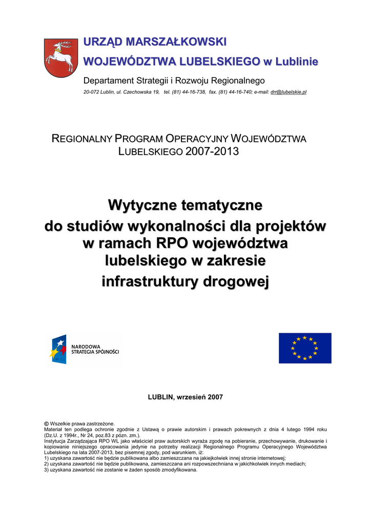 Wytyczne tematyczne dot. infrastruktury drogowej - RPO WL