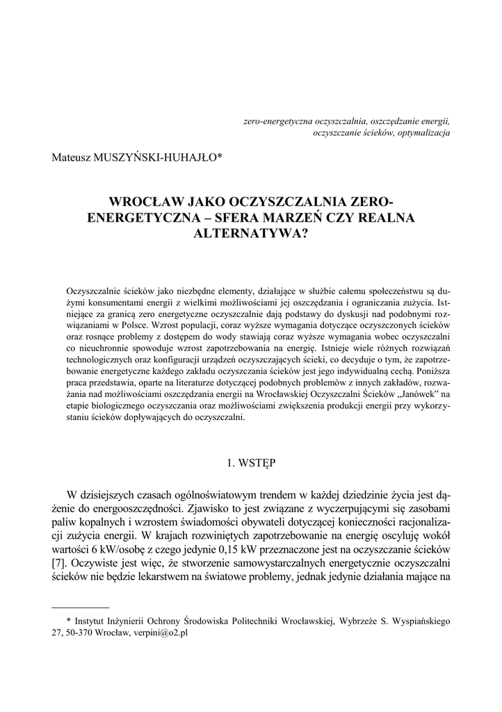Wrocław jako oczyszczalnia zero?energetyczna - Eko-DOk