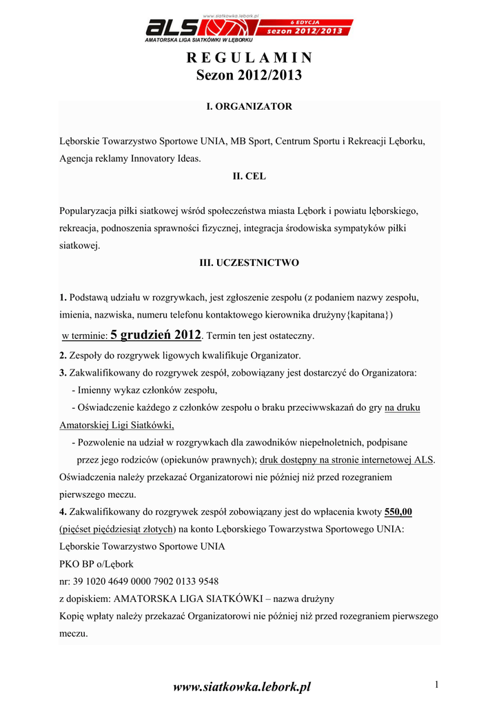 REGULAMIN - Amatorska Liga Siatkówki w Lęborku