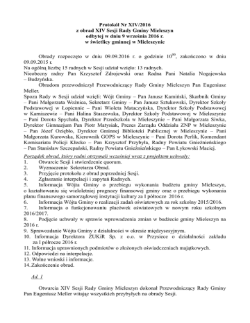 Protokół Nr XIV/2016 z obrad XIV Sesji Rady