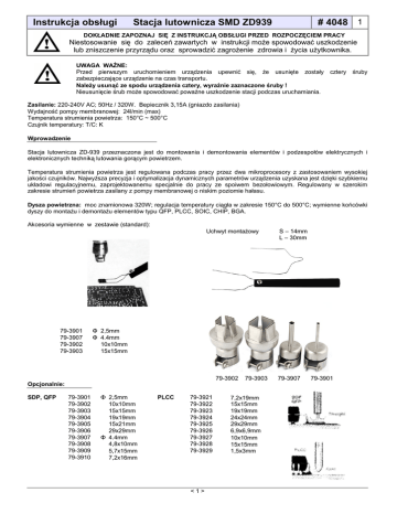 Instrukcja obsługi Stacja lutownicza SMD ZD939 # 4048 1