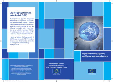 Czy mogę wystosować pytanie do PC-OC? Oczekujemy na pytania dotyczące stosowania lub wykładni instrumentów prawnych Rady Europy z zakresu międzynarodowej współpracy w sprawach karnych. Przyczynią się one do dalszego rozwoju tych instrumentów, przy udziale komitetu PC-OC. Powyższe pytania można kierować do krajowego eksperta komitetu PC-OC. PREMS 34813 POL Pytania z zakresu funkcjonowania i działalności komitetu PC-OC można kierować do Sekretariatu Komitetu na adres poczty elektronicznej: [email protected] Prawa autorskie do oryginalnej wersji językowej (język angielski) należą do Rady Europy Niniejsze tłumaczenie zostało udostępnione za zgodą Rady Europy, podmiotem odpowiedzialnym za tłumaczenie na język polski jest : Ministerstwo Sprawiedliwości, Departament Współpracy Międzynarodowej i Praw Człowieka, Małgorzata Skoczelas-Raczkowska PREMS34813 POL 2071Depliant PC-OC 3volets OK.indd 1 Wspieranie i rozwój sądowej współpracy w sprawach karnych Wydział Prawa Karnego Dyrekcja Generalna I Praw Człowieka i Rządów Prawa 28/03/13 08:28 Wspieranie i rozwój sądowej współpracy w sprawach karnych Międzynarodowa współpraca sądowa opiera się na trzech głównych zasadach: > duch współpracy > znajomość obowiązujących instrumentów prawnych > odpowiednie stosowanie dostępnych narzędzi, mających na celu ułatwienie współpracy Komitet znany pod nazwą PC-OC (komitet ekspertów do spraw funkcjonowania europejskich konwencji w zakresie prawa karnego) odgrywa znaczącą rolę w międzynarodowej współpracy w sprawach karnych. Czym się zajmuje PC-OC? Strona internetowa PC (problematyka karna) OC (dotycząca Konwencji) - jest komitetem składającym się z krajowych ekspertów, działających w obszarze międzynarodowej współpracy w sprawach karnych, pod auspicjami CDPC – Europejskiego Komitetu do Spraw Problemów Przestępczości. Jako źródło przydatnych informacji i dokumentacji związanej ze współpracą w sprawach karnych utworzono stronę internetową (www.coe.int/tcj). Zachęcamy praktyków ze wszystkich krajów członkowskich Rady Europy, będących stronami konwencji dotyczących szeroko pojętej współpracy w sprawach karnych, do odwiedzania strony PC-OC w internecie. Komitet PC-OC nadzoruje stosowanie Konwencji Rady Europy dotyczących międzynarodowej współpracy w sprawach karnych (w szczególności: ekstradycji, wzajemnej pomocy prawnej oraz przekazywania osób skazanych). Proponuje także nowe instrumenty prawne w tej materii. Dzięki działalności Komitetu powstają, przydatne praktykom zajmującym się na co dzień współpracą w sprawach karnych, narzędzia takie jak: informacja o prawie krajowym, modelowe formularze, wytyczne przydatne w praktyce, itd. Komitet składa się z przedstawicieli organów centralnych 47 państw członkowskich Rady Europy a także przedstawicieli państw obserwatorów. Osoby zajmujące się w danym kraju w praktyce tematyką współpracy w sprawach karnych mogą skorzystać z doświadczenia Sekretariatu Komitetu PC-OC czy krajowych ekspertów. PREMS34813 POL 2071Depliant PC-OC 3volets OK.indd 2 Co zawiera strona internetowa PC-OC: > informacje o działalności komitetu PC-OC, włącznie ze sprawozdaniami z poprzednich i obecnych posiedzeń > normy prawne i inne przydatne praktykom materiały źródłowe (informacje o prawie krajowym, narzędzia implementujące) w głównych obszarach działalności PC-OC > o dpowiednie orzecznictwo Europejskiego Trybunału Praw Człowieka > archiwum minionych działań, opracowań i publikacji pozostających w zainteresowaniu praktyków > przydatne linki do stron internetowych związanych z działalnością Komitetu PC-OC. 28/03/13 08:28