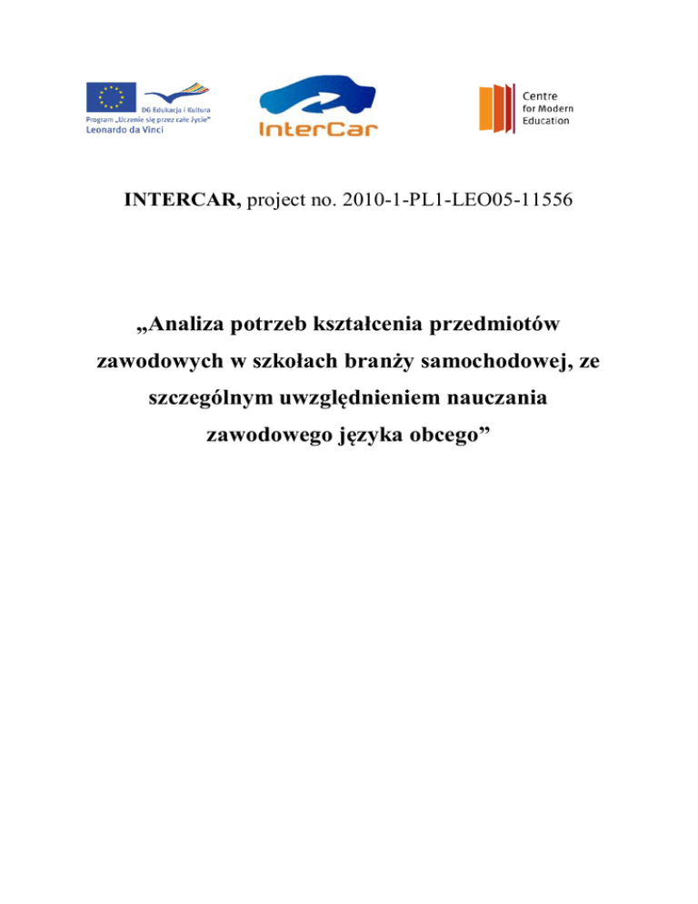 INTERCAR, project no. 2010-1-PL1-LEO05-11556 „Analiza potrzeb kształcenia przedmiotów zawodowych w szkołach branży samochodowej, ze szczególnym uwzględnieniem nauczania zawodowego języka obcego” Jak wynika z raportu „Czego (nie) uczą polskie szkoły, przygotowanego” przez FOR oraz Fundację Eberta1 uczniowie przechodzący przez polski system edukacji uważają, że szkoła nie przygotowuje ich do przyszłej aktywności zawodowej. Aż 47% absolwentów szkół zawodowych ocenia wiedzę i umiejętności nabyte w szkole jako bezużyteczne w pracy. Nie dysponujemy danymi dotyczącymi wyłącznie nauczania języków obcych (a tym bardziej zawodowego języka obcego), ale domniemywać można, że sytuacja w tym obszarze jest bardzo podobna (o ile nie jeszcze bardziej niekorzystna). Poniższa analiza potrzeb kształcenia przedmiotów zawodowych w szkołach branży samochodowej będzie się skupiała głównie (ale nie wyłącznie) właśnie na kwestii nauczania zawodowego języka obcego. Prezentowane wnioski oparte są na opiniach nauczycieli biorących udział w warsztatach przeprowadzonych zorganizowanych w ramach projektu LdV ToI „Intercar” (w warsztatach wzięli udział zarówno nauczyciele języków obcych, jak i przedmiotów zawodowych), z ankiety przeprowadzonej podczas warsztatów i pośród nauczycieli biorących udział w szkoleniach z obsługi portalu e-learningowego intercar.edu.pl2 oraz na nieformalnych rozmowach z nauczycielami szkół zawodowych (podczas innych spotkań). Ponadto, ankieta dotycząca postrzegania potrzeb nauki słownictwa zawodowego w języku obcym została 3 przeprowadzona wśród uczniów szkół zawodowych. W diagnozie problemu uwzględnione zostały także ich opinie. DIAGNOZA PROBLEMU: Zdaniem wszystkich respondentów (nauczycieli), nauka zawodowego języka obcego jest uczniom bardzo potrzebna i powinna być obowiązkowa. Znajomość słownictwa technicznego umożliwi młodzieży zarówno uzyskanie pełni korzyści, jakie dają organizowane przez szkoły wymiany zagraniczne, jak i lepsze możliwości odnalezienia się na rynku pracy po zakończeniu edukacji (możliwość wyjazdu na staże zagraniczne, współpraca z zagranicznymi klientami, możliwość zapoznawania się z dokumentacją techniczną itd.). Jednakże wdrażaniu tego postulatu przeszkadzają następujące, zidentyfikowane przez respondentów, problemy: Zbyt mała liczba godzin języków obcych: 1 Urszula Sztanderska, Wiktor Wojciechowski „Czego (nie) uczą polskie szkoły? System edukacji a potrzeby rynku pracy w Polsce”, Warszawa 2008. 2 Ankieta została wypełniona przez 50 nauczycieli. 3 Ankieta została wypełniona przez 150 uczniów. 2 Na naukę języków obcych przeznacza się w programie nauczania zbyt mało godzin. Powoduje to, iż nauczyciele mają problem, aby zdążyć nawet z podstawowym zakresem materiału (zwł. gdy muszą przygotować uczniów do matury) i nie starcza już czasu na rozszerzenie zakresu o słownictwo zawodowe. Jako ogromny problem wskazywano też fakt skrócenia nauki w technikach do 4 lat. Powoduje to, że uczniowie są przeładowani materiałem i tym trudniej jest poświęcić czas na dodatkowe obowiązki. Zbyt liczne klasy i zróżnicowanie poziomów: Nauczyciele zwracali uwagę, że grupy zajęciowe są bardzo liczne, co spowalnia i utrudnia proces nauczania, czyniąc go mało efektywnym. Podkreślali także, iż uczniowie po gimnazjum przychodzą do szkół z gorszą znajomością języka, niż zakładają to programy nauczania. Powoduje to, że w pierwszej kolejności trzeba poświęcić czas na nadrabianie braków – nie starcza go już potem na język zawodowy. Niewystarczające przygotowanie nauczycieli: Nauczyciele języków obcych nie są przygotowywani merytorycznie do prowadzenia zajęć z języka zawodowego. Brakuje gotowych programów nauczania i wsparcia metodycznego nauczycieli w tym zakresie. Dodatkowy problem stanowi fakt, że niezwykle utrudnione jest organizowanie zajęć wspólnie przez nauczycieli przedmiotów zawodowych i języków obcych. Jest to spowodowane zarówno zbyt małą liczbą godzin, jak i brakiem kontaktu miedzy tymi grupami nauczycieli. Brak materiałów dydaktycznych: Praktycznie nie są dostępne materiały dydaktyczne (podręczniki, zeszyty ćwiczeń, słowniki) wspomagające naukę zawodowego języka obcego w branży samochodowej. Nauczyciele są zmuszeni na własną rękę przygotowywać tego typu materiały, co dodatkowo utrudnia pracę i wydłuża czas potrzebny na przygotowanie lekcji. Opinie uczniów: Wśród ankietowanych uczniów zdecydowana większość stwierdziła, że znajomość słownictwa zawodowego może im się przydać w przyszłej pracy i że chcieliby zdobywać taką wiedzę. Jedynie 16% ankietowanych odpowiedziało, że nie widzi potrzeby nauki zawodowego języka obcego. Natomiast tylko 5% uczniów zainteresowanych taką nauką stwierdziło, że ilość czasu poświęcana na lekcjach na te kwestie jest wystarczająca. Pokazuje 3 to, że po stronie uczniów jest duża potrzeba zdobywania wiedzy w tym zakresie, której obecny system nauczania nie zaspokaja. REKOMENDACJE W oparciu o zebrane materiały, zaproponować można następujące rozwiązania, które będą miały pozytywny wpływ na poprawę zarysowanych wyżej obszarów problemowych: Język obcy techniczny na egzaminie zawodowym Aby zmotywować zarówno nauczycieli, jak i uczniów do nauki zawodowego języka obcego, słownictwo techniczne powinno obowiązkowo znaleźć się na egzaminie zawodowym. Takie rozwiązanie spowoduje, że ten obszar tematyczny zostanie odpowiednio doceniony zarówno przez nauczycieli i uczniów, jak i przez osoby odpowiedzialne za przygotowywanie programów nauczania. Więcej godzin zajęć z języka obcego Aby w pełni zrealizować postulat z poprzedniego punktu, zwiększona musi zostać liczba godzin języka obcego. Tylko dzięki temu nauczyciele będą mogli przezwyciężyć problemy wynikające z