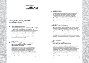 85 Diaboliczna idea [Europejskie prawo prywatne in statu nascendi] 16 Europejski kodeks cywilny – wokół wizji nowego prawa prywatnego dla Europy W jakim kierunku rozwinie się prawo prywatne Europy? Czy europejski kodeks cywilny byłby odpowiednim sposobem uregulowania tego obszaru? Czy istnieją alternatywne rozwiązania, pozwalające na osiągnięcie celów stawianych przed europejską kodyfikacją prawa prywatnego przy użyciu innych środków, być może mniej efektywnych (lub efektownych), ale za to politycznie realistycznych? Pytania te towarzyszą rozważaniom autora nad pożądanym kierunkiem europejskiej regulacji prawa prywatnego. 35 Unifikacja europejskiego prawa prywatnego z perspektywy społeczeństwa polskiego – przyczynek do dyskusji Niezależnie od tego, jak potoczą się losy projektu europejskiego kodeksu cywilnego – czy i kiedy ewentualnie wejdzie on w życie i w jakim zakresie – warto zastanowić się, jakie skutki miałaby unifikacja prawa prywatnego w skali Unii Europejskiej dla społeczeństwa polskiego. Niniejsze opracowanie koncentruje się na potencjalnych zmianach w funkcjonowaniu zawodów prawniczych, przedsiębiorców i konsumentów, jakie może wywołać zastąpienie prawa krajowego (polskiego) prawem jednolitym (europejskim). Czy propozycja stworzenia europejskiego kodeksu cywilnego powinna być podtrzymywana? Zdaniem autora odpowiedź na to pytanie jest determinowana przez fakt istnienia dwóch tradycji prawniczych – kontynentalnej i anglosaskiej - reprezentowanych we Wspólnocie Europejskiej. Legrand poddaje krytyce ideę europejskiego kodeksu cywilnego, przekonując m.in., że jest ona arogancka, myląca i utopijna, a nadto przeciwstawia się literze i etosowi europejskiego prawa wspólnotowego. 131 Kultura a prawo kontraktów Czy chęć zachowania wartości kulturowych praw krajowych powinna powstrzymać UE przed wprowadzeniem kodeksu albo instrumentu opcjonalnego? Odnosząc się do tej kwestii, autor w pierwszej kolejności wziął pod lupę państwa Wysp Brytyjskich oraz kraje skandynawskie, które nie posiadają regulacji kodeksowych, w celu ustalenia, czy kodeks byłby dla nich nie do przyjęcia. Następnie poddał analizie niektóre przykłady różnorodności w zakresie prawa umów w Europie, w szczególności te wymieniane przez zwolenników różnorodności, aby zbadać, czy występujące różnice stanowią przeszkody nie do pokonania. 160 Europejskie prawo prywatne oraz istniejące prawo wspólnotowe W ostatnich dekadach prawo wspólnotowe uległo tak znacznemu rozwojowi, iż możliwe jest wskazanie najważniejszych zasad prawa kontraktów i innych dziedzin prawa na podstawie przepisów regulujących poszczególne zagadnienia oraz obszary. Obecnie prawo wspólnotowe samo w sobie może stanowić pierwotne źródło prac akademickich ukierunkowanych na dalszy rozwój europejskiego prawa prywatnego. Metoda acquis oraz studia porównawcze powinny jednak wzajemnie się uzupełniać. Choć zasady istniejącego prawa WE obejmują więcej aspektów z zakresu prawa umów niż można było przypuszczać, z pewnością nie obejmują one wszystkich z nich. () / 184 Prawo rzymskie a harmonizacja prawa prywatnego w Europie Od ponad stu lat istnieje w Europie, co do zasady, tyle systemów prawnych, ile państw narodowych. W dużej mierze granice nauki prawa stały się identyczne z granicami politycznymi. Zdaniem Zimmermanna kodyfikacja europejskiego prawa prywatnego wymaga zmiany tej sytuacji i ukształtowania nauki prawnej wspólnej dla Europy. Jak wskazuje autor, wspólna europejska kultura prawna, skupiona wokół doktryny i orzecznictwa, które oparte były na tych samych źródłach, już kiedyś istniała. To „dawne” prawo europejskie znane jest jako rzymskokanoniczne ius commune. . 220 Europejskie prawo umów: kwestia ochrony konsumenta, obywatelstwa czy sprawiedliwości? Czy ma to znaczenie, że europejskie prawo umów tworzone jest ze względu na ochronę konsumenta, obywatelstwo czy też sprawiedliwość? Albo, patrząc inaczej, czy dla strony zawierającej umowę ma znaczenie, czy jest traktowana jako konsument, jako obywatel czy jako osoba? Niniejszy artykuł broni tezy, że okoliczności te mają znaczenie. W artykule tym przedstawione zostały polityki europejskie w dziedzinie ochrony konsumenta, obywatelstwa europejskiego oraz przestrzeni sprawiedliwości, a także omówiono, do jakiego rodzaju prawa umów każde z takich podejść prowadzi oraz do powstania jakiego rodzaju społeczeństwa się przyczynia. [Dokumenty] 274 Sprawiedliwość społeczna w europejskim prawie umów: manifest Autorzy manifestu przekonują, iż unifikacja prawa prywatnego powinna być postrzegana jako element złożonego, politycznego procesu stopniowego rozwoju europejskiego tworu politycznego, u którego podstaw leży wspólny system wartości i który respektuje jednocześnie zróżnicowanie kulturowych tradycji narodowych i regionalnych. Postrzeganie tego procesu jako prostego mechanizmu budowy rynku jest błędem. Dlatego też apelują o zrewidowanie programu stworzenia europejskiego systemu prawa umów, tak by ukierunkowywał on proces polityczny na realizację ideałów sprawiedliwości społecznej. [Esej o Europie] 317 Europejski konstytucjonalizm oraz trzy modele socjalnej Europy Artykuł przedstawia trzy modele relacji pomiędzy konstytucjonalizacją projektu integracji europejskiej a wartościami socjalnymi. Ich analiza nawiązuje również do odmiennych koncepcji prawa prywatnego i roli, jaką odgrywa ono w kontekście integracji europejskiej. Artykuł ukazuje także wzajemne powiązanie pomiędzy formami europejskiej konstytucjonalizacji a alternatywnymi modelami socjalnej Europy. - , 259 Konstytucyjne podstawy europejskiego prawa prywatnego Dyskusja nad europejskim prawem prywatnym nie może pomijać postępującej konstytucjonalizacji prawa europejskiego. Rozważania autorów koncentrują się wokół dwóch zasadniczych zagadnień. Po 