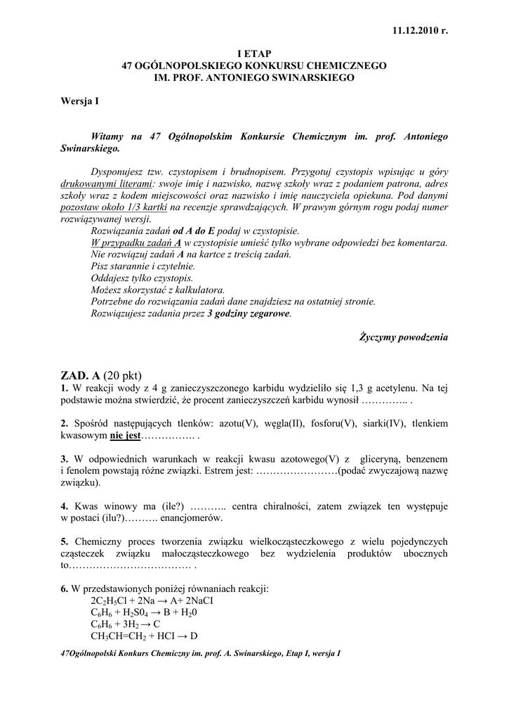 pobierz - Konkurs Chemiczny im. prof. Antoniego Swinarskiego