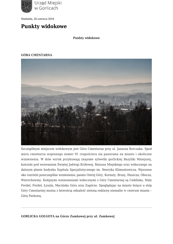 Punkty widokowe - Urząd Miejski w Gorlicach