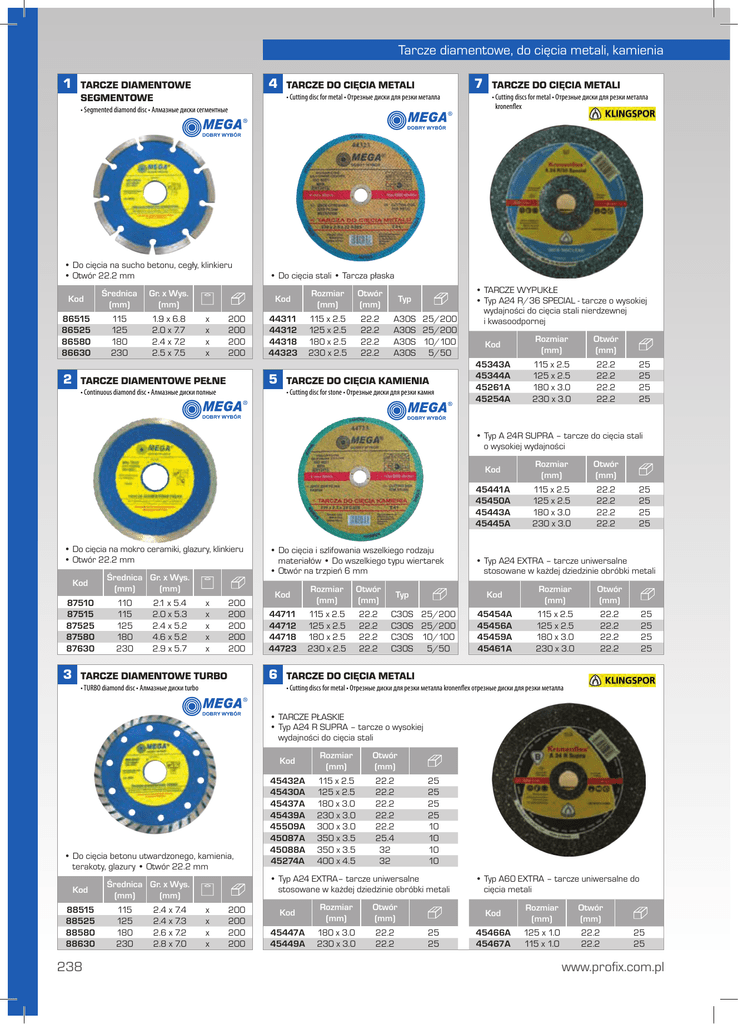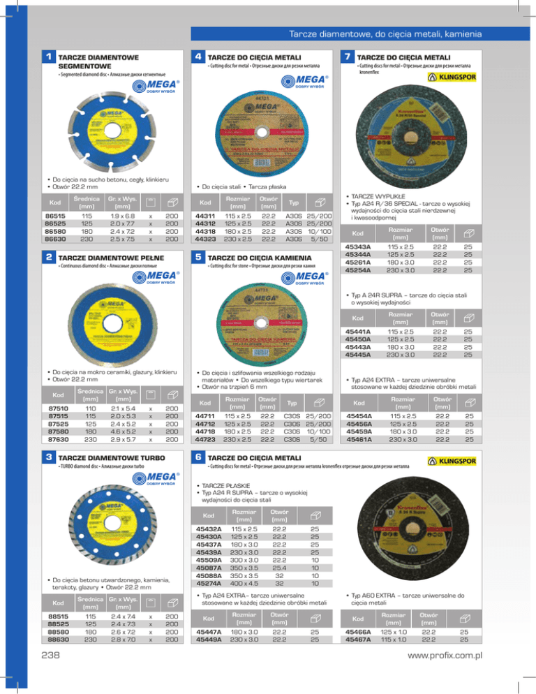 238 www.profix.com.pl Tarcze diamentowe, do cięcia metali, kamienia