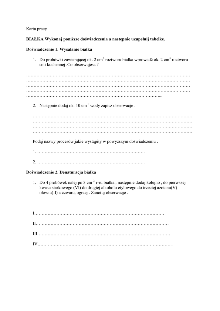 Karta pracy BIAŁKA Wykonaj poniższe doświadczenia a następnie