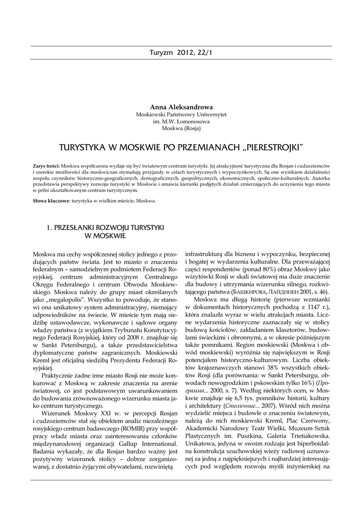 TURYSTYKA W MOSKWIE PO PRZEMIANACH „PIERESTROJKI”