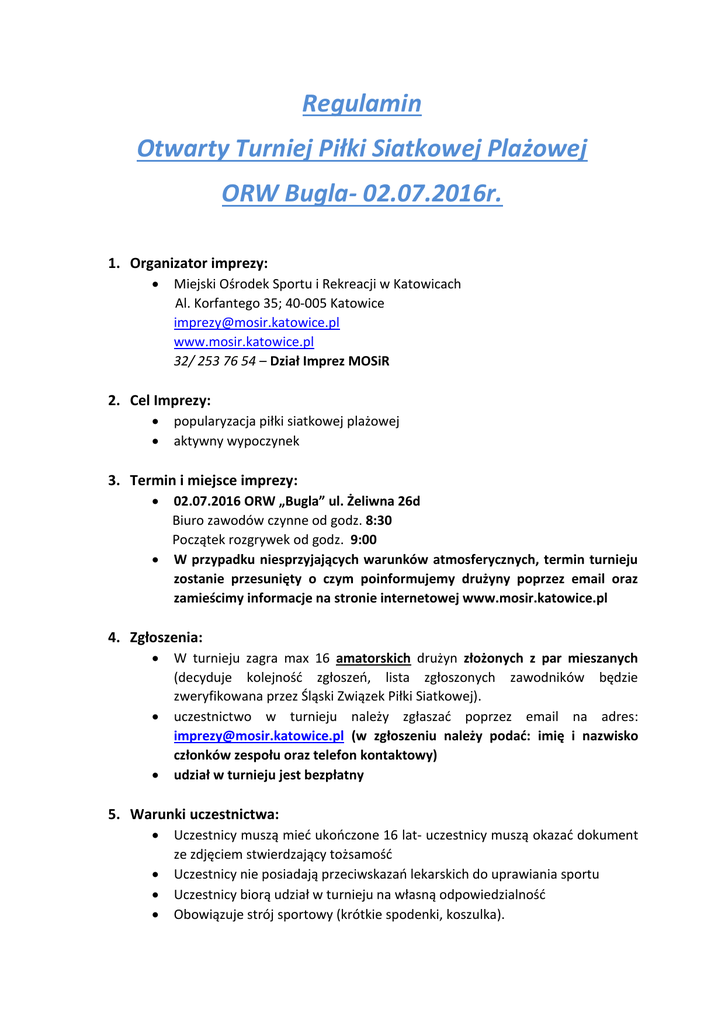 Regulamin Otwarty Turniej Piłki Siatkowej Plażowej ORW Bugla
