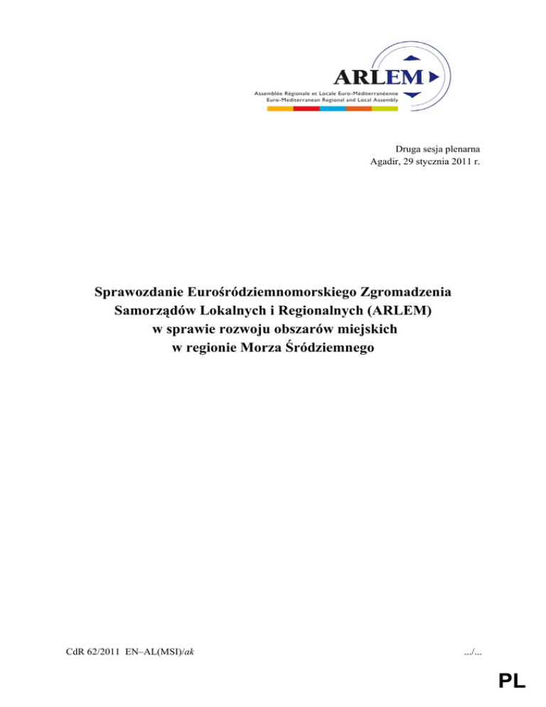 Druga sesja plenarna Agadir, 29 stycznia 2011 r. Sprawozdanie Eurośródziemnomorskiego Zgromadzenia Samorządów Lokalnych i Regionalnych (ARLEM) w sprawie rozwoju obszarów miejskich w regionie Morza Śródziemnego CdR 62/2011 EN–AL(MSI)/ak .../... PL -1- Niniejsze sprawozdanie ARLEM opracował sprawozdawca Khalid Al-Hnaifat, burmistrz At-Tafila (Jordania). W dniach 2 lipca i 28 października 2010 r. zostało przedyskutowane przez członków Komisji Spraw Gospodarczych, Społecznych i Terytorialnych (ECOTER) Eurośródziemnomorskiego Zgromadzenia Samorządów Lokalnych i Regionalnych. Sprawozdanie zostało przyjęte podczas drugiej sesji plenarnej ARLEM, która odbyła się w Agadirze w Maroku 29 stycznia 2011 r. CdR 62/2011 EN–AL(MSI)/ak .../... -2KONTEKST Rozwój obszarów miejskich został szeroko omówiony w deklaracji z Marsylii przyjętej przez ministrów spraw zagranicznych w dniu 4 listopada 2008 r. Na eurośródziemnomorskim posiedzeniu ministerialnym w dniu 25 czerwca 2009 r. poruszano 1 kwestie związane ze zrównoważonym rozwojem, w tym z rozwojem obszarów miejskich . Eksperci zgromadzeni na tym posiedzeniu uznali znaczenie zainicjowania wspólnych działań w ramach Unii dla Śródziemnomorza mających na celu określenie kwestii kluczowych dla 2 zrównoważonego rozwoju obszarów miejskich na skalę regionalną . Jednym z pomysłów było powołanie wąskich grup, których zadaniem byłoby określenie wytycznych zrównoważonego rozwoju obszarów miejskich w miastach śródziemnomorskich. Ministrowie z zadowoleniem przyjęli pierwsze zaproszenie do zgłaszania konkretnych projektów operacyjnych związanych z dziedzinami i potrzebami o priorytetowym znaczeniu. W rezultacie na wiosnę 2011 r. zaplanowano posiedzenie ministerialne na temat zrównoważonego rozwoju obszarów miejskich. Najważniejsze elementy przyszłej śródziemnomorskiej strategii miejskiej to: − karta w sprawie zrównoważonych miast śródziemnomorskich; − system planowania przestrzennego dla regionu Morza Śródziemnego; − zaproszenie do zgłaszania projektów modelowych zrównoważonych miast wraz z przedmieściami; − porozumienie między długoterminowymi darczyńcami i inwestorami dotyczące wspólnych kryteriów kwalifikujących innowacyjne projekty miejskie; 3 − utworzenie śródziemnomorskiej agencji ds. miast . *** Pierwsze posiedzenie Eurśródziemnomorskiego Zgromadzenia Samorządów Lokalnych i Regionalnych (ARLEM) odbyło się w dniu 21 stycznia 2010 r. Zgromadzenie ARLEM zostało 1 2 3 Zob. „Notatka informacyjna w sprawie działań Unii dla Śródziemnomorza na rzecz rozwoju obszarów miejskich”, nieoficjalny dokument sporządzony przez Unię dla Śródziemnomorza, 2010 r. Zob. „Notatka informacyjna w sprawie działań Unii dla Śródziemnomorza na rzecz rozwoju obszarów miejskich”, nieoficjalny dokument sporządzony przez Unię dla Śródziemnomorza, 2010 r., strona 1: „(…) wspieranie procesu podejmowania decyzji, zarządzanie lokalnymi strategiami i ich stosowanie, zapewnienie spójności społecznej i terytorialnej w miastach; zachęcanie do stwarzania odpowiednich warunków gospodarczych, co można osiągnąć dzięki inteligentnemu i wydajnemu zarządzaniu zasobami w ramach zintegrowanego procesu poprawiającego jakość środowiska życia obywateli państw śródziemnomorskich w ośrodkach miejskich zarządzanych z poszanowaniem dziedzictwa kulturowego i naturalnego; wspieranie zrównoważonej architektury śródziemnomorskiej; zachęcanie do racjonalnego zarządzania usługami publicznymi skuteczniej zaspokajającymi potrzeby mieszkańców; stworzenie podwalin mobilizowania środków finansowych niezbędnych do zrównoważonego rozwoju śródziemnomorskich ośrodków miejskich”. Zob. „Notatka informacyjna w sprawie działań Unii dla Śródziemnomorza na rzecz rozwoju obszarów miejskich”, nieoficjalny dokument sporządzony przez Unię dla Śródziemnomorza, 2010 r. CdR 62/2011 EN–AL(MSI)/ak .../... -3utworzone przez Komitet Regionów UE, władze lokalne i regionalne z trzech wybrzeży Morza Śródziemnego oraz europejskie i międzynarodowe stowarzyszenia reprezentujące organa lokalne i regionalne na obszarze eurośródziemnomorskim, aby zapewnić Unii dla Śródziemnomorza niezbędne wsparcie organów lokalnych i regionalnych w realizacji przedsięwzięć oraz aby nadać jej wymiar terytorialny. Niniejsze sprawozdanie w sprawie rozwoju obszarów miejskich ma umożliwić ARLEM-owi zaoferowanie na szczeblu lokalnym i regionalnym wsparcia na rzecz śródziemnomorskiej strategii miejskiej, która obejmuje: kartę w sprawie zrównoważonych miast śródziemnomorskich; system planowania przestrzennego dla regionu Morza Śródziemnego; zaproszenie do zgłaszania projektów modelowych zrównoważonych miast wraz z przedmieściami oraz porozumienie między długoterminowymi darczyńcami i inwestorami dotyczące wspólnych kryteriów kwalifikujących innowacyjne projekty miejskie. *** WPROWADZENIE Region Morza Śródziemnego boryka się z problemem wysokiej gęstości zaludnienia, a problemy pojawiają się w wyniku procesu urbanizacji w wielu regionach, szczególnie w miastach, gdzie nie uwzględniono zasad zrównoważonego rozwoju na różnych etapach rozwoju obszarów miejskich. Wyraźnie pokazują to szczegółowe wskaźniki, takie jak wysokie zużycie i marnotrawienie energii, duża ilość odpadów komunalnych, duże natężenie ruchu drogowego, wysokie koszty życia i zatory 4 komunikacyjne oraz potencjalna utrata spójności społecznej na obszarach miejskich . Przewiduje się, że tempo rozwoju będzie coraz szybsze na terenach południowych i wschodnich, a co najmniej jedna trzecia ludności będzie zamieszkiwać miejskie obszary nadbrzeżne. To bez wątpienia spowoduje nasilenie problemu niskiej spójności społecznej, rozprzestrzeniania się ubóstwa oraz bezprawnej zabudowy. Doprowadzi to również do dużego zanieczyszczenia powietrza, niew