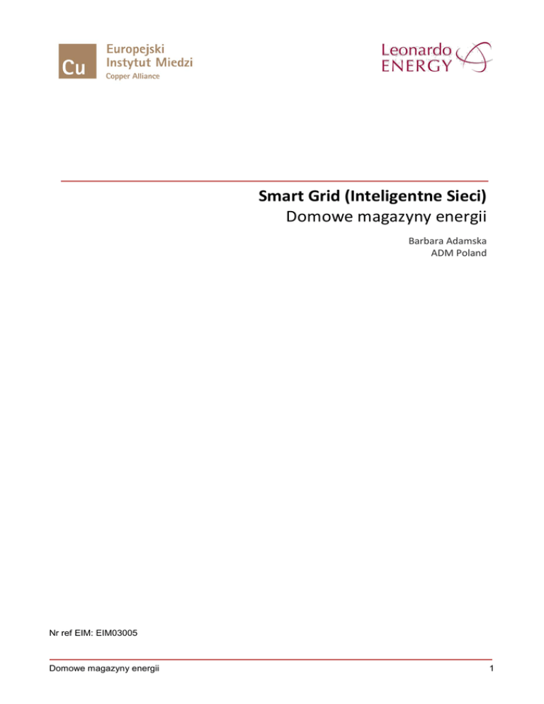 Smart Grid (Inteligentne Sieci) Domowe magazyny energii Barbara Adamska ADM Poland Nr ref EIM: EIM03005 Domowe magazyny energii 1 Wstęp Najwięcej domowych magazynów energii zainstalowanych jest w Niemczech, gdzie użytkuje się 25 tys. tego typu systemów, a szacuje się, że do 2020 r. liczba nowych instalacji może wynosić nawet 45 tys. rocznie. Rynek niemiecki to źródło informacji oraz motywacji dla osób decydujących się na taki magazyn. Już na etapie nazewnictwa pojawiają się problemy. Czy system magazynowania energii i akumulatory są tym samym? Z założenia system magazynowania energii to dużo więcej niż akumulator. To kompletne rozwiązanie, zawierające, oprócz akumulatorów, falownik oraz managera energii. Jednak w praktyce mianem „systemu magazynowania energii” określane są bardzo różne rozwiązania. Powoduje to, że porównanie ich wcale nie jest proste. Warto przyjrzeć się specyfikacji poszczególnych systemów, zwłaszcza jeżeli ich ceny są wyjątkowo atrakcyjne. Często okazuje się, że np. niektóre nie zawierają falowników, a w innych nie ma ani falownika, ani managera energii. Są również takie, które nie obejmują akumulatorów, ale mają pozostałe komponenty. Znaczenie magazynu dla sieci W Niemczech moc zainstalowana w fotowoltaice to ponad 38 GWp, ilość instalacji PV wynosi ok. 1,5 mln. Szacunkowo 98% wszystkich zainstalowanych systemów PV podłączonych jest to sieci niskiego napięcia, co odpowiada ok. 80% wytworzonego prądu solarnego. Czy magazyny energii w domowych systemach PV mogą przyczynić się do zmniejszenia szczytowej podaży prądu solarnego? Czy stosowanie magazynów energii na szeroką skalę przez prywatnych inwestorów umożliwi przyłączenie większej ilości instalacji PV do sieci bez konieczności inwestycji w infrastrukturę? W czasie dyskusji nad celowością wprowadzenia w Niemczech programu wspierającego zakup magazynów energii pojawiło się opracowanie renomowanego Instytutu Fraunhofera, próbujące odpowiedzieć na zasadnicze pytania. Naukowcy przeprowadzili analizę skutków systemowych stosowania na dużą skalę elektrochemicznych zasobników energii w małych instalacjach PV, konstrukcyjnie związanych z budynkiem. Rozważano możliwość odciążenia sieci w wyniku wygładzenia szczytowej podaży prądu solarnego oraz zredukowania zapotrzebowania na energię elektryczną z sieci w godzinach wieczornych. Dodatkowo badano, czy baterie akumulatorów w małych systemach PV mogą stanowić wsparcie w regulowaniu częstotliwości i mocy w systemie elektroenergetycznym. Założeniem opracowania był wzrost popularności akumulatorów litowo-jonowych kosztem akumulatorów kwasowo-ołowiowych. Jest to notabene trend obserwowany na rynku. Wnioski badaczy z Instytutu Fraunhofera były bardzo obiecujące: zastosowanie na szeroką skalę akumulatorów w małych instalacjach PV prowadzi do odciążenia sieci oraz umożliwia podłączenie do niej większej mocy jednostek fotowoltaicznych. Warunkiem uzyskania takiego efektu jest użytkowanie zasobników energii w systemach PV w sposób wspierający sieć, aby wyrównywać szczytową podaż.. Aby tak się działo, w czasie największej produkcji energii ze słońca musi ona ładować akumulatory, a nie trafiać do sieci. Jeżeli domowe magazyny energii będą wykorzystywane w ten sposób, możliwe jest zredukowanie o ok. 40% szczytowej podaży prądu solarnego w skali całego systemu. Ponadto do tego samego odcinka sieci może być podłączonych do 66% więcej mocy z instalacji PV, co zmniejsza nakłady na rozbudowę sieci. System wsparcia zakupu magazynów energii w Niemczech został wprowadzony w maju 2013 r., a obecnie na podstawie danych empirycznych można stwierdzić, czy wyniki opracowania Instytutu Fraunhofera pokrywają się z rzeczywistością. Okazuje się, że badacze się nie mylili. Sytuacja, w której ilość energii wprowadzonej do sieci nie może przekroczyć poziomu 60% zainstalowanej mocy systemu PV, oznacza, że do tego samego odcinka sieci można przyłączyć o 1,7 więcej mocy w instalacjach PV. Ograniczenie ilości energii wprowadzanej do sieci do poziomu 40% zainstalowanej mocy w elektrowni PV oznacza zwiększenie tego wskaźnika do wartości 2,5. Rynek niemiecki Przyglądając się danym dotyczącym zakupu domowych magazynów energii na rynku niemieckim, można stwierdzić, że czynnikami sprzyjającymi podjęciu decyzji zakupowej są z jednej strony niska taryfa gwarantowana i wysoka cena energii elektrycznej pobieranej z gniazdka, a z drugiej spadek ceny magazynów energii, dofinansowanie ich zakupu oraz poprawa ich jakości. W latach, kiedy taryfy gwarantowane były bardzo wysokie, a cena energii elektrycznej kupowanej od operatora niska, opłacało się wprowadzać do sieci Domowe magazyny energii 2 całość prądu wytworzonego we własnej instalacji PV. Aby wpłynąć na zmianę zachowania właścicieli instalacji PV, w 2009 r. zdecydowano się w Niemczech na wprowadzenie dopłaty do prądu zużywanego na własne potrzeby. Regulacja ta dotyczyła systemów PV o mocy zainstalowanej mniejszej niż 30 kWp. Po pół roku obowiązywania tego rozwiązania zróżnicowano wysokość dopłat w zależności od wysokości udziału zużycia własnego. Wartością graniczną było zużycie na poziomie 30%. Dopłata rosła, jeżeli zużycie własne przekraczało ten poziom. W 2012 roku zrezygnowano z dopłacania do prądu zużywanego na własne potrzeby, jednocześnie mocno obniżano wysokość taryf gwarantowanych. W tym czasie koszt wytworzenia energii elektrycznej na własnym dachu był już niższy niż cena prądu dla gospodarstwa domowego, więc właścicielom domowych instalacji PV zależało na zwiększaniu udziału zużycia własnego, nawet bez dodatkowych finansowych bodźców wspierających takie postępowanie. Nie było to jednak jeszcze wystarczającą przesłanką do zakupu magazynu energii – różnica między ceną energii 