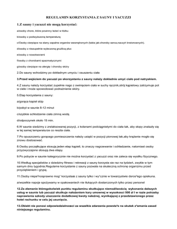 REGULAMIN KORZYSTANIA Z SAUNY I YACUZZI 1.Z sauny i