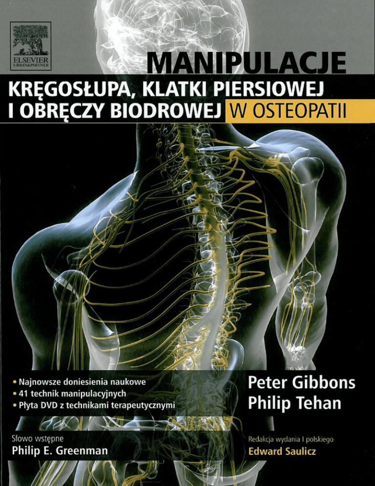 KRĘGOSŁUPA, KLATKI PIERSIOWEJ I OBRĘCZY BIODROWEJ W OSTEOPATII • Płyta DVD z technikami terapeutycznymi Peter G ibbons Philip Tehan Słowo wstępne Redakcja wydania I polskiego Philip E. Greenman Edward Saulicz • Najnowsze doniesienia naukowe • 41 technik manipulacyjnych MANIPULACJE KRĘGOSŁUPA, KLATKI PIERSIOWEJ I OBRĘCZY BIODROWEJ W OSTEOPATII Peter Gibbons Philip Tehan Stowo wstępne Philip E. Greenman Redakcja wydania I polskiego Edward Saulicz ELSEVIER Elsevier Urban & Partner U R B A N ^TN ER W rO C ia W Spis treści Płyta DVD dołączona do tej książki zawiera filmy wideo przedstawiające sposób wy konania wszystkich zabiegów manipulacyjnych opisanych w części B (z wyjątkiem ostat niej techniki przedstawionej w rozdz. 11). Dla łatwiejszego znalezienia technik mani pulacji znajdujących się na płycie DVD na marginesie tekstu zamieszczono następu jący symbol: <5\ W celu przejrzenia klipu wideo ilustrującego daną technikę należy 0 zaznaczyć odpowiednią ikonkę w spisie treści znajdującym się na płycie DVD. Płyta DVD jest przeznaczona do wykorzystania jednocześnie z książką i nie stanowi samodzielnego produktu. Stowo wstępne .............................................................................................................................................................. ix Przedmowa .................................................................................................................................................................... xi Przedmowa do wydania p o lskie g o .................................................................................................................................. Podziękowania................................................................................................................................................................ CZĘSCA 1 2 3 4 5 6 7 Techniki manipulacyjne HVIA - osteopatyczny punkt widzenia ............................. 1 Wprowadzenie................................................................................................................................... Filozofia, praktyka i technika osteopatii .......................................................................................... Kinematyka i ruchy sprzężone kręgosłupa ...................................................................................... Ustawienie i ryglowanie kręgosłupa................................................................................................. Bezpieczeństwo a techniki manipulacyjne I M A ............................................................................. Uzasadnienie stosowania technik manipulacyjnych HVLA Naukowa weryfikacja działań klinicznych........................................................................................ 3 7 15 27 35 61 73 CZEŚĆ B 8 xiii xv Techniki manipulacyjne H V L A ................................................................................. Odcinek szyjny i szyjno-piersiowy..................................................................................................... S 8.1 Q 8.2 Staw szczytowo-potyliczny C0-C 1: punkt kontaktu na kości potylicznej; chwyt podbródkowy; pacjent w pozycji leżenia tyłem; manipulacja przednio-górna po luku .......................................... 8.4 89 Staw szczytowo-potyliczny C0-C 1: punkt kontaktu na kręgu szczytowym; chwyt podbródkowy; pacjent w pozycji leżenia tyłem; manipulacja przednio-górna po tuku .......................................... 8.3 83 87 Staw szczytowo-obrotowy C1-C 2: chwyt podbródkowy; pacjent w pozycji leżenia tyłem; manipulacja rota cyjna................................................................... Staw szczytowo-obrotowy C1-C 2: chwyt kołyskowy; pacjent w pozycji leżenia tyłem; manipulacja ro ta c y jn a ...................................................................... 94 99 104 Spis treści 8.5 Kręgosłup szyjny C2-C 7: ślizg po skosie w górę; chwyt podbródkowy; pacjent w pozycji leżenia ty łe m ........................................................................................................... 108 8.6 Kręgosłup szyjny C2-C 7: ślizg po skosie w górę; chwyt podbródkowy; pacjent w pozycji leżenia tyłem - od m ia n a ........................................................................................ 113 8.7 Kręgosłup szyjny C2-C 7: ślizg po skosie w górę; chwyt kołyskowy; pacjent w pozycji leżenia ty łe m ........................................................................................................... 118 8.8 Kręgosłup szyjny C2-C 7: ślizg po skosie w górę; chwyt kołyskowy; pacjent w pozycji leżenia tyłem; zamiana dźwigni pierwszo- i drugorzędowych ........................... 122 8.9 Kręgosłup szyjny C2-C 7: ślizg po skosie w górę; pacjent w pozycji siedzącej; osoba wykonująca zabieg stoi przed pacje n te m ............................. Kręgosłup szyjny C2-C 7: ślizg po skosie w górę; 127 8.10 8.11 pacjent w pozycji siedzącej; osoba wykonująca zabieg stoi z boku p acjenta............................... Kręgosłup szyjny C2-C 7: ślizg po skosie w dół; chwyt podbródkowy; pacjent w pozycji leżenia ty łe m ........................................................................................................... 132 136 8.12 Kręgosłup szyjny C2-C 7: ślizg po skosie w dół; chwyt kołyskowy; pacjent w pozycji leżenia ty łe m ........................................................................................................... 8.13 Kręgosłup szyjny C2-C 7: ślizg po skosie w dół; pacjent w pozycji siedzącej; osoba wykonująca zabieg stoi z boku pacjenta ............................... Kręgosłup szyjno-piersiowy C7-Th3: rotacyjna manipulacja ślizgowa; 146 pacjent w pozycji leżenia przodem; osoba wykonująca zabieg stoi z boku kozetki ..................... 150 Kręgosłup szyjno-piersiowy C7-Th3: rotacyjna manipulacja ślizgow