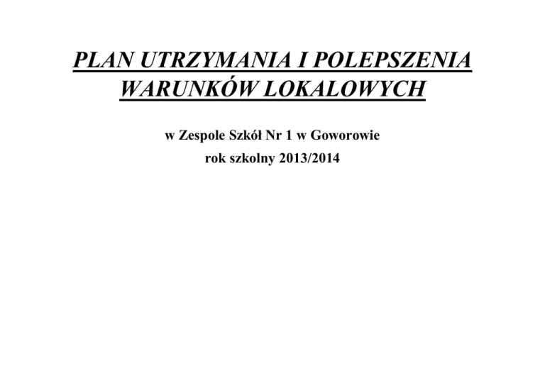 PLAN UTRZYMANIA I POLEPSZENIA WARUNKÓW LOKALOWYCH