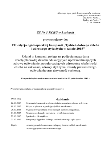 Proponowane działania w naszej szkole (projekt wstępny) :