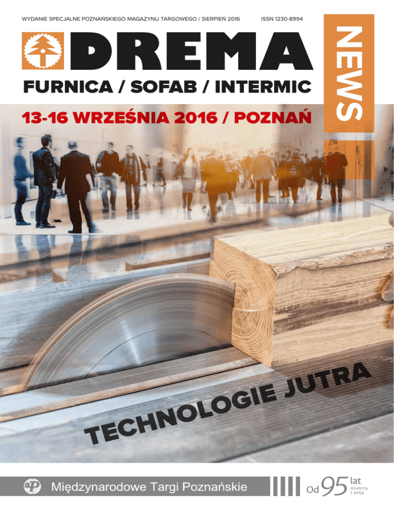 WYDANIE SPECJALNE POZNAŃSKIEGO MAGAZYNU TARGOWEGO / SIERPIEŃ 2016 ISSN 1230-8994 FURNICA / SOFAB / INTERMIC 13-16 WRZEŚNIA 2016 / POZNAŃ TE O N CH E I G LO A R T JU DLA ZWIEDZAJĄCYCH KOMPONENTY I AKCESORIA DO PRODUKCJI MEBLI OBRÓBKA DREWNA SYSTEMY ODPYLANIA, SUSZARNIE PRZEMYSŁ MEBLARSKI NARZĘDZIA DO OBRÓBKI DREWNA, WYPOSAŻENIE POMOCNICZE, CHEMIA TARTACZNY, LEŚNICTWO, 3 PRZEMYSŁ SUSZARNIE, KOTŁOWNIE MASZYNY I KOMPONENTY DLA PRZEMYSŁU WŁÓKIENNICZEGO ODZIEŻOWEGO I OBUWNICZEGO PROMOCJA DREWNA FABRYKA MEBLI NA ŻYWO WEJŚCIE PÓŁNOCNE GRUNWALDZKA BUKOWSKA CATERING ROOS VIP EVELT A MATERIAŁY OBICIOWE I KOMPONENTY DO PRODUKCJI MEBLI TAPICEROWANYCH MATE JKI 3 WEJŚCIE WSCHODNIE WEJŚCIE ZACHODNIE DE ŚNIA CKIC Patronat honorowy H WJAZD Rekomendacja dla Targów Drema Patronat Targów Drema i Furnica A SK OW OG GŁ Międzynarodowe Targi Poznańskie sp. z o.o., ul. Głogowska 14, 60-734 Poznań 02 SŁOWEM WSTĘPU Tomasz Kobierski Wiceprezes Międzynarodowych Targów Poznańskich jak również edukacja oraz pokazanie siły polskich producentów działających w tym obszarze. Każdy, kto w terminie 13-16 września br. pojawi się na terenie Międzynarodowych Targów Poznańskich, będzie miał szansę zapoznać się z innowacjami w zakresie wyposażenia parku maszynowego, przeanalizować ofertę komponentów, dekorów i materiałów do produkcji mebli, jak również zdobyć informacje na temat nadchodzących trendów w designie. Szanowni Państwo, przemysł drzewny i meblarski odgrywają w Polsce istotną rolę - branża drzewna wytwarza ponad 2 proc. polskiego PKB, daje także zatrudnienie dla ponad 300 tys. osób. Jednak, mimo dobrej kondycji, sektor ten potrzebuje wciąż inspiracji, a co za tym idzie – innowacji, profesjonalizacji i dobrych praktyk. I tu z pomocą przychodzą Międzynarodowe Targi Maszyn i Narzędzi dla Przemysłu Drzewnego i Meblarskiego DREMA 2016, oraz odbywające się w tym samym czasie Międzynarodowe Targi Komponentów do Produkcji Mebli FURNICA, Międzynarodowe Targi Materiałów Obiciowych i Komponentów do Produkcji Mebli Tapicerowanych SOFAB oraz Targi Maszyn i Komponentów dla Przemysłu Włókienniczego, Odzieżowego i Obuwniczego INTERMIC. Targi DREMA to największe wydarzenie w Polsce i Europie Środkowo-Wschodniej poświęcone szeroko pojętej branży obróbki drewna, które rokrocznie przyciąga rzesze zwiedzających oraz wystawców z całego świata. Połączenie w jednym czasie 4 bloków tematycznych i kompleksowa ekspozycja sprawiają, że targi stają się niezwykle istotnym narzędziem budowania przewagi konkurencyjnej firm, zarówno na rynku krajowym, jak i zagranicznym. Główne cele tego wydarzenia to promocja najnowocześniejszych maszyn, narzędzi, technologii i rozwiązań, Redaktor Naczelna: Katarzyna Supa Redaktorzy Wydania: Aleksandra Pawlina-Janyga, Tomasz Wojciechowski Projekt graficzny: Brandswork Druk: Drukarnia MTP Zdjęcia: Archiwum MTP, www.fotolia.pl Wydawca: Międzynarodowe Targi Poznańskie ul. Głogowska 14, 60-734 Poznań, tel.: +48 61 869 2000 www.mtp.pl Targi DREMA, FURNICA, SOFAB i INTERMIC spełniają także fundamentalną rolę integrującą krajowych reprezentantów przemysłu drzewnego i meblarskiego. Dzięki bliskiej współpracy z najważniejszymi branżowymi Stowarzyszeniami i Izbami, miejsce to pozwala zaprezentować potencjał polskiej obróbki drewna i dorobek profesjonalistów związanych z produkcją mebli, jak również omówić bieżące tematy nurtujące branżę i wypracować wizję dalszego rozwoju, celem zbudowania wysokiej pozycji polskich marek na świecie. O prestiżu targów DREMA świadczy fakt, że jest to jedyne w Polsce i jedno z kilkunastu na świecie branżowych wydarzeń popieranych przez Europejską Federację Producentów Maszyn do Obróbki Drewna EUMABOIS. Ponadto, zarówno Międzynarodowe Targi Maszyn i Narzędzi dla Przemysłu Drzewnego i Meblarskiego DREMA, jak i Międzynarodowe Targi Komponentów do Produkcji Mebli FURNICA oraz Targi Maszyn i Komponentów dla Przemysłu Włókienniczego, Odzieżowego i Obuwniczego INTERMIC zyskały także rekomendację Polskiej Izby Przemysłu Targowego! Mam nadzieję, że wizyta w Poznaniu na tegorocznych targach DREMA, FURNICA, SOFAB i INTERMIC w dniach 13-16 września 2016 r. będzie dla Państwa owocna, i oferta ekspozycji oraz wydarzeń towarzyszących, przygotowana przez Międzynarodowe Targi Poznańskie i partnerów, sprosta Państwa oczekiwaniom! Serdecznie zapraszam! 05 DREMA 2016 14 MODERN DESIGN 07 FURNICA I SOFAB 2016 19 WYDARZENIA TARGOWE 09 ZŁOCI MEDALIŚCI 29 NOWOŚCI PRODUKTOWE 12 KOOPDREW 2016 32 RAPORT DREMY 13 BEZPIECZEŃSTWO 35 PROGRAM WYDARZEŃ Niniejsza karta uprawnia do: • Bezpłatnego wstępu na targi • Bezpłatnego wjazdu samochodem na teren Międzynarodowych Targów Poznańskich KARTA VIP • Korzystania ze Strefy VIP CATERING (Pawilon 6A) 03 DREMA 2016 Andrzej Półrolniczak / Prezes Stowarzyszenia Producentów Maszyn, Urządzeń i Narzędzi do Obróbki Drewna DROMA Szanowni Państwo, Serdecznie zapraszam Państwa do zwiedzenia 32 edycji Międzynarodowych Targów Maszyn i Narzędzi dla Przemysłu Drzewnego i Meblarskiego. Targi DREMA są jednymi z kilkunastu światowych targów branży maszyn i narzędzi do obróbki drewna, które są popierane Europejską Federację Producentów Maszyn do Obróbki Drewna EUMABOIS. Federacja EUMABOIS skupia 14 europejskich stowarzyszeń narodowych producentów maszyn do obróbki drewna, w tym polskie Stowarzyszenie DROMA.Podczas tegorocznej edycji targów DREMA będzie można zapoznać się z ofertą, prezentowaną przez światowych i europejskich liderów branży maszyn i narzędzi do obróbki drewna. Zakres tematyczny targów DREMA oraz bogaty program imprez towarzyszących pozwolą Państwu na wszechstronny przegląd osiągnięć branży maszyn i narzędzi do obróbki drewna i zapoznanie się z najnowszymi technologiami dedykowanymi dla przemysłu tartacznego, obróbki drewna i 