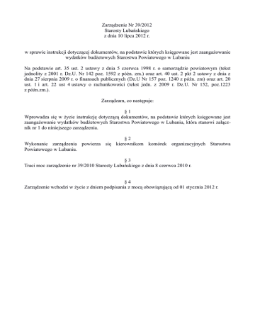 Zarządzenie Nr 39/2012 Starosty Lubańskiego z dnia 10 lipca 2012