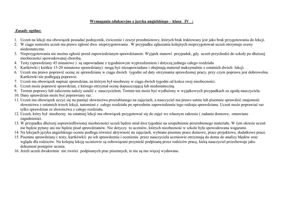 Wymagania edukacyjne z języka angielskiego