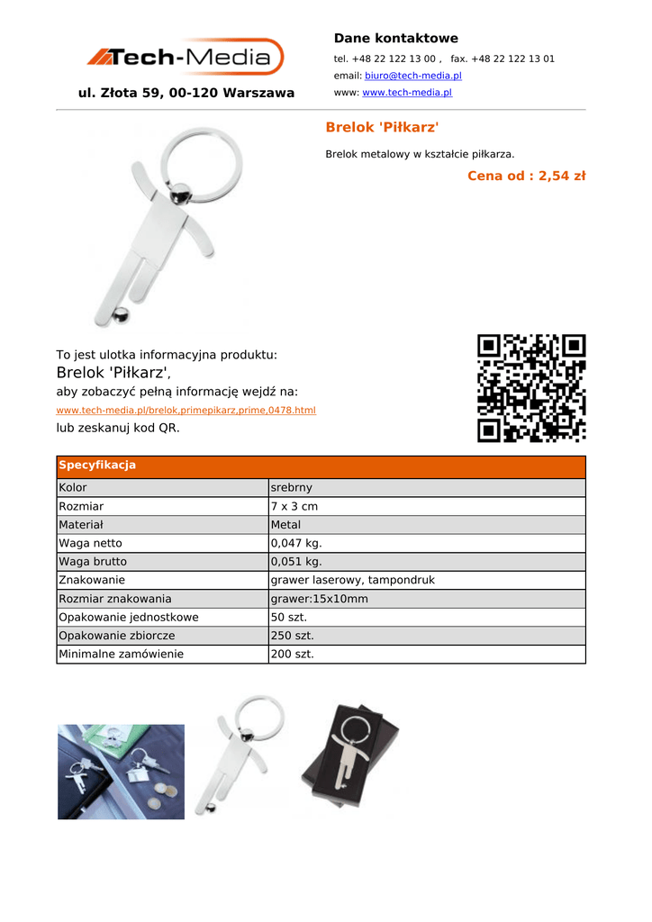 Brelok Piłkarz - ulotka produktu - Tech