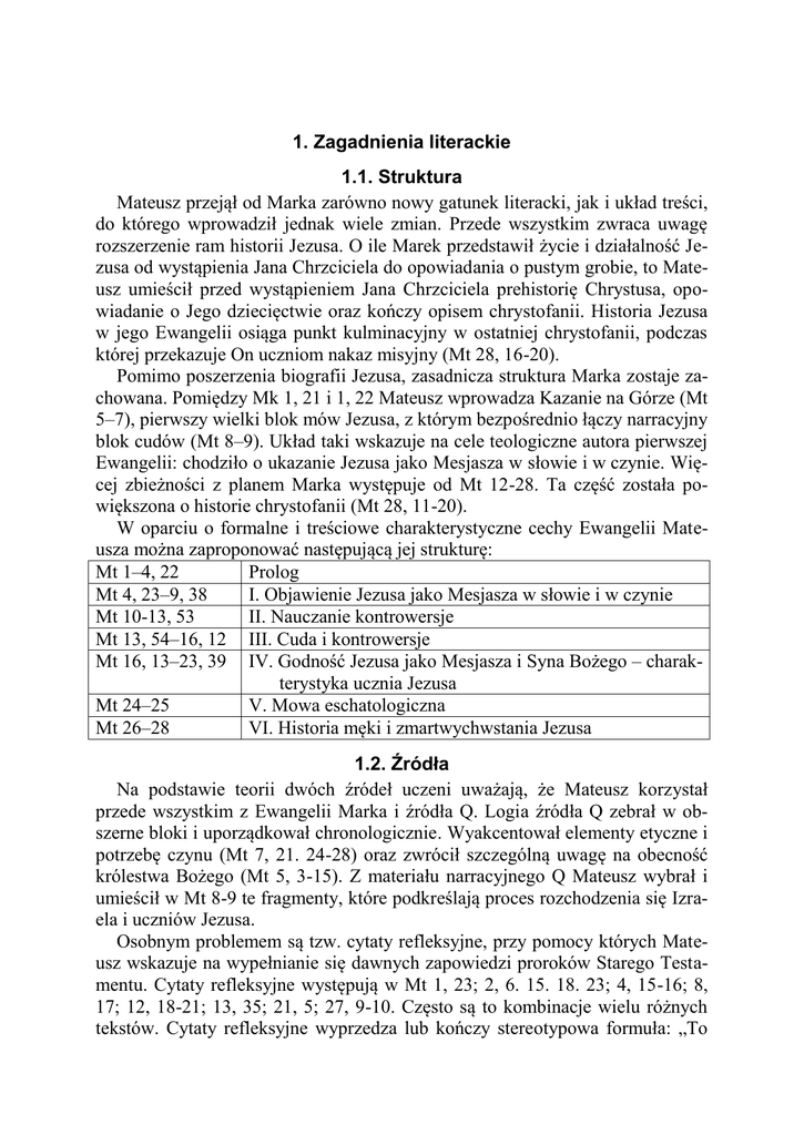 1. Zagadnienia literackie 1.1. Struktura Mateusz przejął od Marka