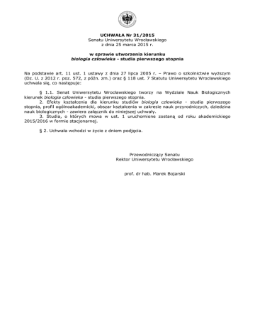 UCHWAŁA Nr 31/2015 Senatu Uniwersytetu Wrocławskiego z dnia