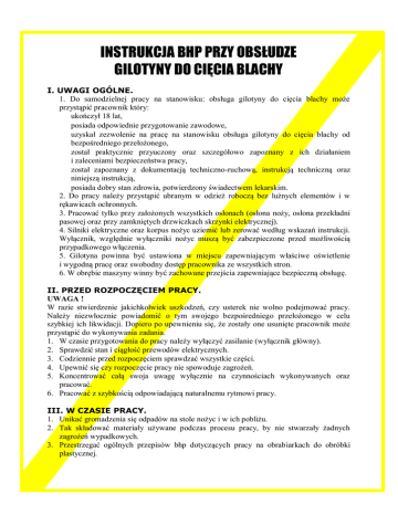 instrukcja bhp przy obsłudze gilotyny do cięcia blachy