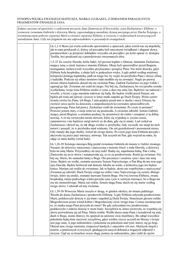 SYNOPSA POLSKA EWANGELII MATEUSZA, MARKA I ŁUKASZA