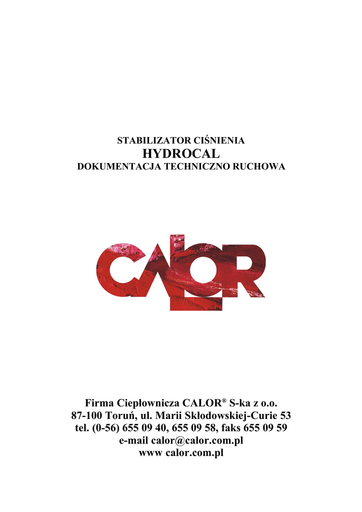 STABILIZATOR CIŚNIENIA HYDROCAL DOKUMENTACJA TECHNICZNO RUCHOWA Firma Ciepłownicza CALOR® S-ka z o.o. 87-100 Toruń, ul. Marii Skłodowskiej-Curie 53 tel. (0-56) 655 09 40, 655 09 58, faks 655 09 59 e-mail [email protected] www calor.com.pl A. INFORMACJE OGÓLNE 1. Zastosowanie Stabilizator Ciśnienia HYDROCAL służy do zabezpieczania układu wodnego zamkniętego instalacji grzewczej zasilanej z węzła cieplnego lub kotłowni przed nadmiernym wzrostem lub spadkiem ciśnienia. Urządzenie przeznaczone jest do zabezpieczania instalacji gdy temperatura za źródłem ciepła nie przekracza 100°C. Parametry urządzenia oraz funkcje zabezpieczające są zgodne z PN-91/B-02415 (Zabezpieczenie wodnych, zamkniętych systemów ciepłowniczych – Wymagania). Wymagane jest dodatkowe zamontowanie zaworu bezpieczeństwa za kotłem lub wymiennikiem. Funkcja ograniczenia maksymalnej temperatury wody zasilającej system jest realizowana poprzez regulatory temperatury, projektowane w układach technologicznych węzła lub kotłowni. Urządzenie skutecznie zastępuje układ naczyń przeponowych zabezpieczających instalacje, szczególnie w dużych obiektach, realizując jednocześnie funkcje uzupełniania w przypadku ubytku wody. Zbiornik na wodę jest bezciśnieniowy i nie wymaga dozoru technicznego. Kolektor powrotny z instalacji c.o 1 10 4 2 3 8 4a 5 4b 9 6 7 6a połączenie ze stacją uzdatniania wody 2. Opis rysunku i zasada działania 1 - czujnik ciśnienia (maksymalna długość przewodu 50 metrów) zamontowany na kolektorze powrotnym z instalacji wewnętrznej c.o. !!! 2 - elektroniczny układ sterujący 3 - zbiornik 4 - sondy poziomu wody 4-maksymalnego 4a-odniesienia 4b-minimalnego 5 - pompa uzupełniająca 6 - zawór elektromagnetyczny zrzutowy 6a - uzupełniający (jeżeli występuje) 7 - zawór ręcznego zrzutu ciśnienia (normalnie zamknięty) 8 - zawór zwrotny 9 - zawór zrzutowy wody ze zbiornika 10 - rura przelewowa 2 Czujnik ciśnienia (1) mierzy ciśnienie w instalacji. Jeżeli jest ono wyższe niż zadane Pmax (parametr A3) następuje zrzut wody do zbiornika (3) przez zawór elektromagnetyczny (6) do momentu uzyskania właściwych parametrów (ciśnienie pracy Ppracy A2 ). Jeżeli ciśnienie w instalacji jest niższe od Pmin (A1), następuje załączenie pompy uzupełniającej (5) do momentu uzyskania ciśnienia Ppracy. Praca urządzenia w wykonaniu standardowym Sonda poziomu minimalnego (4b) zabezpiecza pompę (5) przed pracą na „sucho biegu”. W przypadku obniżenia poziomu wody w zbiorniku poniżej poziomu sondy, układ sterujący sygnalizuje stan alarmu poprzez stałe świecenie czerwonej diody LED na sterowniku. Należy wówczas ręcznie uzupełnić wodę ze źródła zewnętrznego (miejska sieć ciepłownicza, stacja uzdatniania wody) Sonda (4a) jest sondą odniesienia. Praca urządzenia w wykonaniu z modułem automatycznego uzupełniania wody Sonda poziomu minimalnego (4b) zabezpiecza pompę (5) przed pracą na „sucho biegu”. Sonda poziomu maksymalnego (4) zabezpiecza układ przed uzupełnianiem wody ponad poziom maksymalny. Sonda (4a) jest sondą odniesienia. Uzupełnianie wody trwa przez okres zdefiniowany w programie sterownika jednak nie dłużej niż do osiągnięcia przez wodę sondy poziomu maksymalnego. 3. Typoszereg wytwarzanych urządzeń Urządzenie wytwarzane jest w dwóch podstawowych wymiarach zbiorników, zgodnie z poniższą tabelą : Lp. Objętość VC [dm3] Wysokość [mm] Średnica [mm] 1. 2. 3. 315 520 930 1850 1850 1850 ~490 ~640 ~850 Wydajność cieplna instalacji [kW] 95/70 90/70 680 890 1570 560 710 1250 W przypadku, gdy obliczeniowa objętość zbiornika jest inna niż w tabeli stosuje się zbiorniki dostawne. Zbiorniki te łączy się poprzez króćce o średnicy Dn = 40mm. Możliwe jest także wykonanie zbiornika o innych wymiarach, na specjalne zamówienie. B. INSTRUKCJA OBSŁUGI I EKSPLOATACJI 1. Wstęp Przed przystąpieniem do uruchomienia urządzenia pracownicy bezpośrednio obsługujący muszą zapoznać się z niniejszą dokumentacją techniczno-ruchową DTR. Dokładne zapoznanie się z niniejszą DTR i jej ścisłe przestrzeganie umożliwi prawidłową eksploatację urządzenia. 2. Dane techniczne Zasilanie : sieć trójfazowa 400V AC 3 Sterowanie pompy Zabezpieczenie Pompa uzupełniająca : stycznik DIL-EEM-10 : wyłącznik termiczny ZE 1,0-1,6 A (Moeller) : Grundfos typ CH 2 lub CH 4 400V temperatura pracy od 0 do 90°C Czujnik ciśnienia : Aplisens AS lub PC28 zakres 0-600 kPa lub 0-1,0 Mpa zasilanie 12-30 V/DC sygnał wyjściowy 4-20 mA temperatura pracy od –25 do +80°C Zawory elektromagnetyczne : Danfoss EV220B zakres ciśnień 0,03-1,0 MPa cewka 220V/AC/10W sterowanie – przekaźnik zawór – normalnie zamknięty Sondy : stal nierdzewna sygnał sterujący 12V/1kHz Zbiornik wody : laminat żywiczny pojemność 0,9 0,5 lub 0,3 m3 lub krotności Układ sterujący : CALOR 3 w oparciu o moduł logiczny EASY 512-DC-R Sygnalizacja : diody LED, wyświetlacz ciekłokrystaliczny Zabezpieczenie główne : wyłącznik S193 C6 (montowany na przewodzie zasilającym przez użytkownika) Stopień ochrony : IP 55 Masa urządzenia : zależna od wielkości i wyposażenia Uwaga : drukiem wytłuszczonym podano urządzenia w wykonaniu standardowym. 3. Tabela poziomu napełniania Poziom względny wody w zbiorniku w zależności od średniej temperatury wody w instalacji powinien przyjmować wartości z poniższej tabeli Tśr [°C] 35 40 45 50 55 60 65 70 75 80 h/hmax [%] 17 25 32 39 47 55 64 74 84 95 Tśr = (Tz+Tp)/2 h/hmax [%] – wysokość poziomu wody w zbiorniku Tz- temperatura zasilania Tp- Temperatura powrotu Tśr- Temperatura średnia instalacji 4. Podłączenie do instalacji Urządzenie należy podłączyć do rury powrotnej instalacji grzewczej w węźle cieplnym lub kotłowni. UWAGA! Czujnik ciśnienia (1) dostarczany jest oddzielnie wraz z urządzeniem. Należy zamontować go na rozdzielaczu powrotnym z wewnętrznej instalacji c.o. 