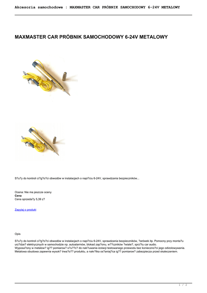 Akcesoria samochodowe : MAXMASTER CAR PRÓBNIK