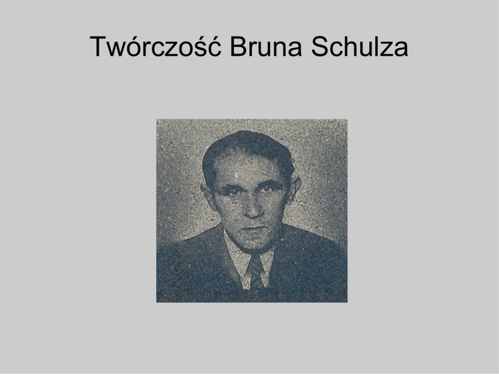 Twórczość Bruna Schulza Życie Bruna Schulza Ojciec właścicielem sklepu z tekstyliami, z powodu choroby ojca zamknięte Przerwane studia na Politechnice Lwowskiej Drohobycka grupa „Kaleila” Wystawy w Warszawie, Lwowie i Wilnie Grafiki „Xięga bałwochwalcza” Posada nauczyciela rysunków od 1924 roku Wystawy w Truskawcu i Krakowie 12.7.1892 – 19.11.1942 Drohobycz Znajomośd z Józefiną Szelioską Spotkanie z Zofią Nałkowską Płatny urlop w 1936 roku Znajomośd z Romaną Helpern Wycieczka do Paryża w 1938 roku Radzieckie malarstwo propagandowe Od 1941 roku w drohobyckim getcie Zmuszon do pracy dla Feliksa Landaua Zastrzelony 19 listopada 1942 roku Romana Helpern Twórczość 1933 – Sklepy cynamonowe 1936 – Sanatorium pod klepsydrą Opowiadania: Jesieo, Republika marzeo, Kometa, Ojczyzna Pisma krytyczne m. in. o Ferdydurke, Cudzoziemce Współpraca przy przekładzie procesu Kafki Sklepy cynamonowe wydane w 1934 roku 15 opowiadań Sierpień, Nawiedzenie, Ptaki, Manekiny, Traktat o manekinach albo Wtóra Księga Rodzaju, Traktat o manekinach. Ciąg Dalszy, Traktat o manekinach. Dokończenie, Nemrod, Pan, Pan Karol, Sklepy cynamonowe, Ulica Krokodyli, Karakony, Wichura, Noc wielkiego sezonu Sanatorium pod Klepsydrą wydane w 1937 roku 13 opowiadań Księga, Genialna epoka, Wiosna, Noc lipcowa, Mójojciec wstępuje do strażaków, Druga jesień, Martwy sezon, Sanatorium pod Klepsydrą, Dodo, Edzio, Emeryt, Samotność, Ostatnia ucieczka ojca Kadr z filmu Sanatorium pod klepsydrą (reż. W.J. Has, 1973). Charakterystyka twórczości - pisane w pierwszej osobie (postać o cechach samego autora) - nadawanie subiektywnego znaczenia faktom – własna inicjacja - wspomnienia z dzieciństwa i wczesnej młodości przez dorosłego narratora - zwykłe zdarzenia i postacie staja się cudami i herosami, miasteczko staję się bajkową metropolią - małe galicyjskie miasteczko, kupiecka rodzina żydowska - przemiany ojca: ptaki, kraby, karakony - finansowy upadek i likwidacja sklepu z powodu choroby i śmierci ojca - nie tylko prywatna mitologia, też źródła biblijne i helleńskie - dwa światy: XIX-wieczna mieszczański (solidny i stabilny), XX-wieczny nowoczesny (błyskotliwy, ale też tandetny i podejrzany moralnie) - uporczywa walka ze śmiercią – forma swoistej materii - Schulz wydobywa dziwaczność obu światów - oniryzm – opowiadania sa skonstruowane na mechanizmach snów (materialne, fantastyczne, nielogiczne, surrealistyczne) - mitotwórstwo (wyobraźnia dziecięca) - ingerencja w strukturę materii – destrukcja, degradacja ludzkich istot (zazwyczaj postać ojca); uczłowieczenie martwych przedmiotów - poszukiwanie pierwotnej wiedzy, prawdy o świecie – Księga - język zmetaforyzowany, precyzyjny intelektualny, Życiorys wszakże, który zmierza do wyjaśnienia swego własnego sensu, wyostrzony na własne znaczenie duchowe, jest niczym innym jak mitem. Tu autor czuje się bliski odczuciom Antyku, sądzi, że swoją kreację, swe fantazjowanie i snucie wywiódł z pogańskiego pojmowania życia, jak to już dla starożytnych genealogia własnego rodu pogrążała się w micie po odejściu drugiej czy trzeciej generecji, a wzrok obrócony wstecz dostrzegł historię rodziny znajdującą swe rozwiązanie w mitologii. W książce tej podjęto próbę wydobycia dziejów pewnej rodziny, pewnego domu na prowincji nie z ich realnych elementów, zdarzeń, charakterów czy prawdziwych losów, lecz poszukując ponod nimi mitycznej treści, sensu ostatecznego owej historii. Bruno Schulz: Exposé o “Sklepach cynamonowych” Bohater W Sklepach cynamonowych centralna postacią jest ojciec Józef jest dzieckiem – świat chłopca bogaty, gęsty od znaczeń i symboliki. W Sanatorium pod Klepsydrą na pierwszy plan wysuwa się Józef Dramat dojrzewania Od inicjacji do schyłku jego świata Stylistyka bogactwo, ekscentryczność słownictwa (Tadeusz Breza: U Schulza słowa obce brzmią nie cudzoziemsko, ale zaziemsko.) istotny sposób użycia wyrazów (Niebo obnażało tego dnia wewnętrzną konstrukcję w wielu jakby anatomicznych preparatach, pokazujacych spirale i słoje śwaitła, przekroje seledynowych brył nocy, plaźmę przestworzy, tkankę rojeń nocnych. - Sklepy cynamonowe) zasada zmieszania sfer w metaforach (animizacja i personifikacja przedmiotów martwych; animizacja uprzedmiotowienie człowieka) zatarcie granic pomiędzy przestrzenią naturalną a przestrzenią sztucznie zorganizowaną – stają sie jednorodną całością (Wichura, Noc wielkiego sezonu) duża ilość wypowiedzeń złożonych, długie wywody i opisy, niewielka ilosć dialogów emocjonalny styl wypowiedzi rytmizacja retoryczne pytania, czytelnik świadkiem, raczej monolog, brak oczekiwania odpowiedzi narrator jako eksperymetator, doświadczenia na materii słowa Obrazowanie opiera się o rzeczywistość fizyczną, sprawdzalną – wszystko dzieje się w taj samej rzeczywistości miasteczka; związek z rzeczywistymi faktami biograficznymi konflikt między czynnikiem osobistym a zewnętrzym, rzeczywistość jest wypadkową tych światów (Ludzie uciekali przed zmierzchem w cichym popłochu i naraz dosięgał ich ten trąd i wysypywał się ciemną wysypka na czole, i tracili twarze, które opadały wielkimi, bezkształtnymi plamami, i szli dalej już bez rysów, bez oczu, gubiąc po drodze maske po masce, tak że zmierzch roił się od tych larw porzuconych, sypiących się za ich ucieczką. (Noc wielkiego sezonu) – impresjonistyczny obraz zmierzchu, ekspresjonistyczny odbiór) Rzeczywistość przybiera pewne kształty tylko dla pozoru, dla żartu, dla zabawy. Ktoś jest człowiekiem, a ktoś karakonem, ale ten kształt nie sięga istoty, jest tylko rolą na chwile przyjetą, tylko naskórkiem, który za chwilę zostanie zrzucony. (List B. Schulza do Witkacego) zainteresowanie nie materialnym kształtem świata, bardziej ukrytym jego sensem, walorem emocjonalnym obrazowanie jak w marzeniach