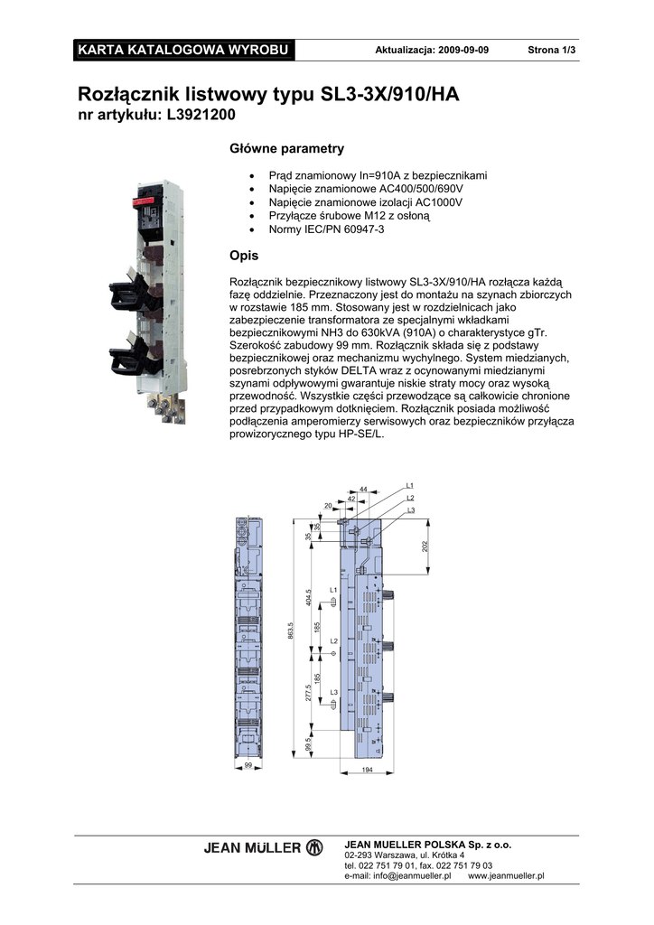 Rozłącznik listwowy typu SL3-3X/910/HA
