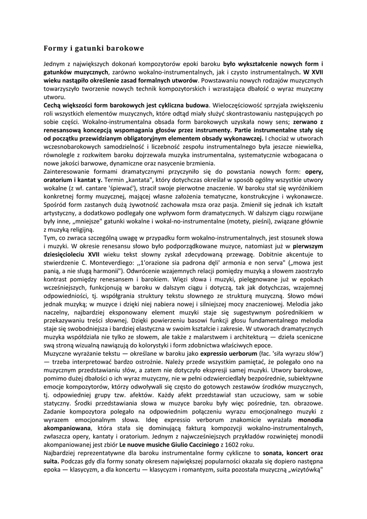 baroku. I chociaż jako forma zachowała żywotnośd w następnych stuleciach, nie osiągnęła już